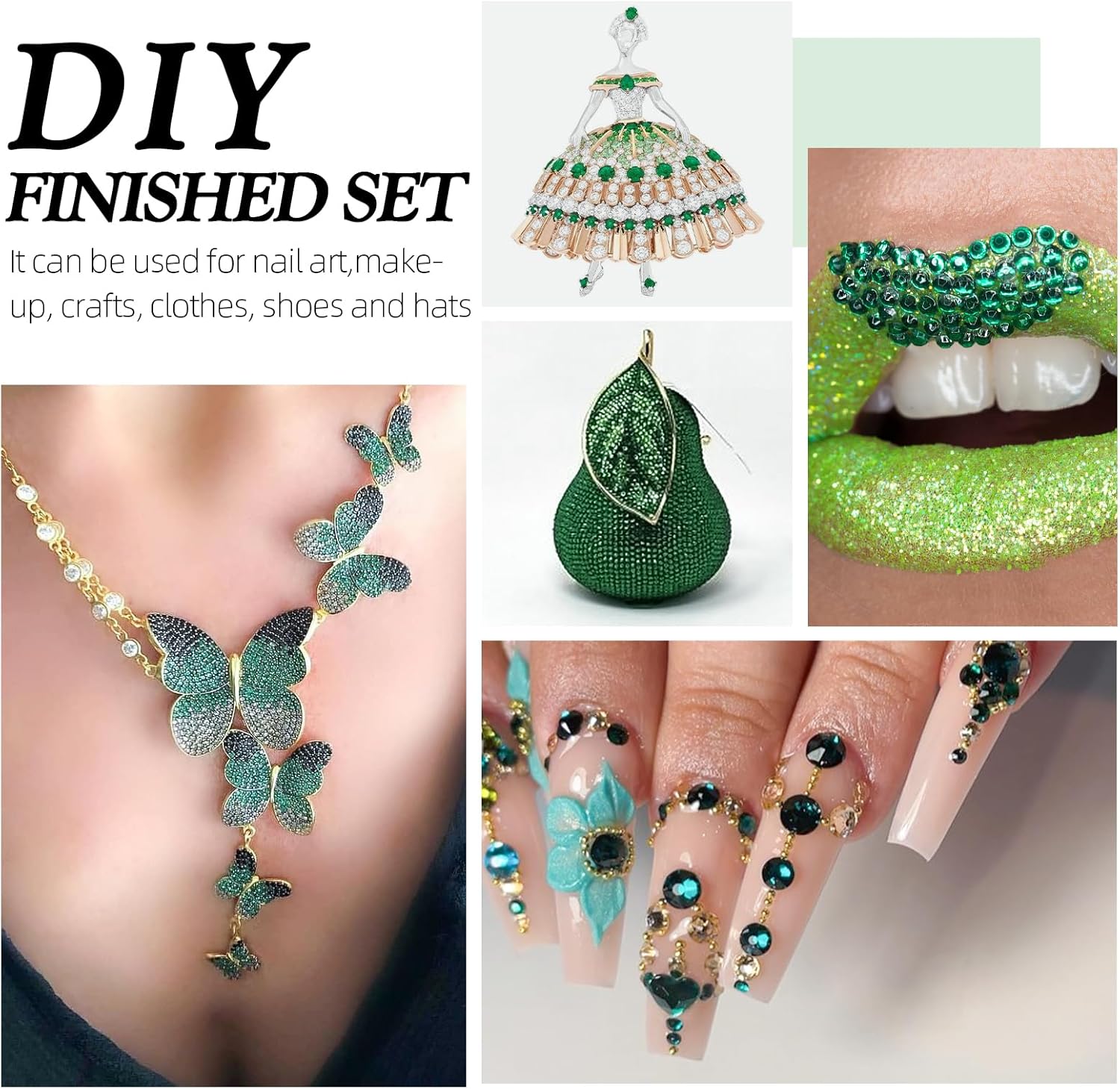 Green Flatback Rhinestones, Glass Rhinestones for Nail Art and Craft, Glue Fix, Loose Crystal Gemstones(Green, SS4, 2880pcs, 1.5-1.7mm)