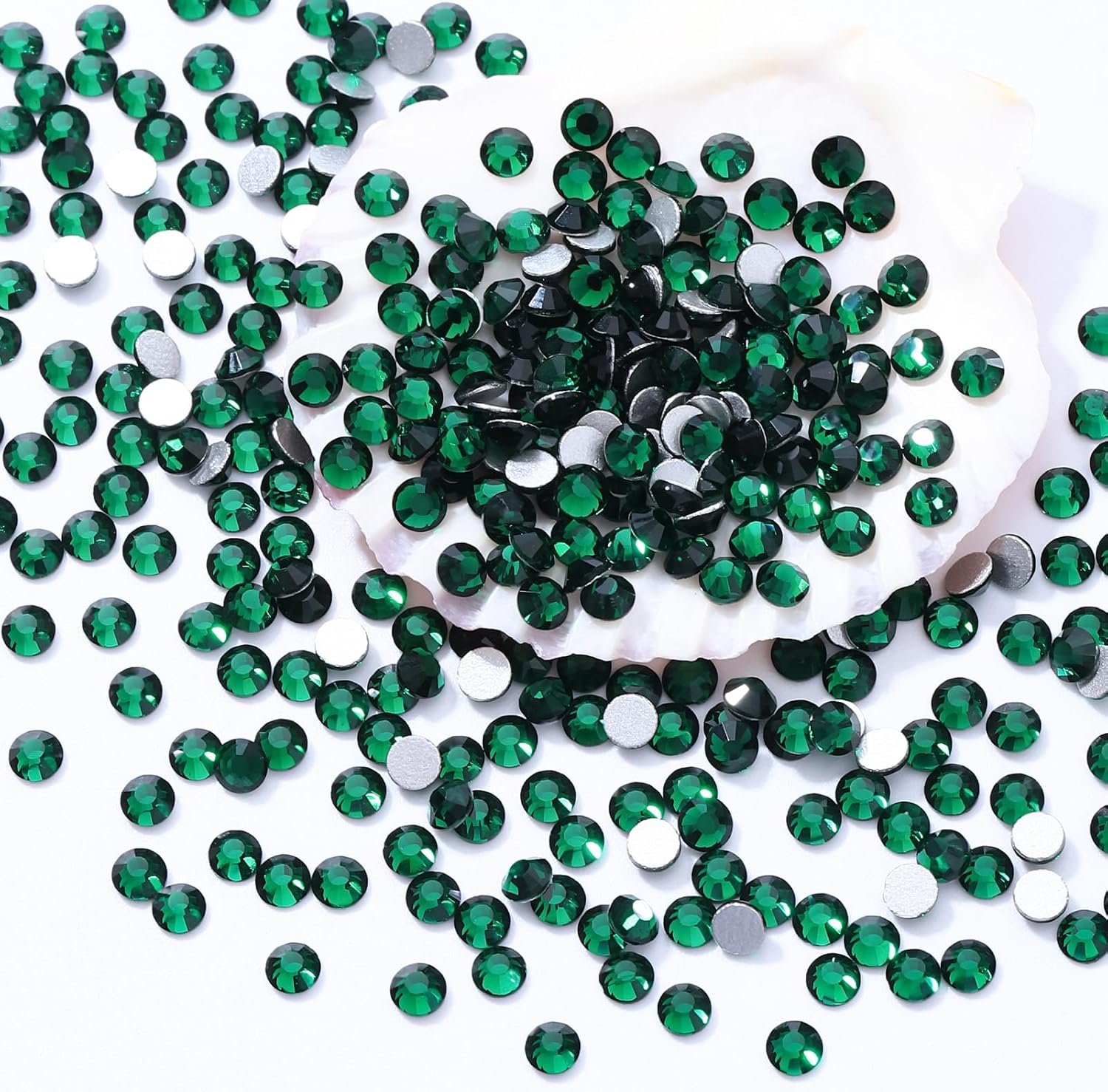 Green Flatback Rhinestones, Glass Rhinestones for Nail Art and Craft, Glue Fix, Loose Crystal Gemstones(Green, SS20, 2880pcs, 4.6-4.8mm)