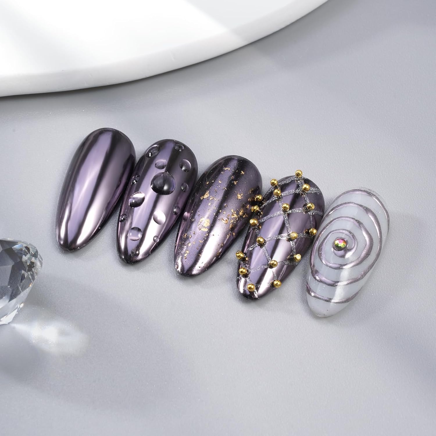 - Gorgeous metallic gunmetal/silvery black chrome: The shade is silvery black almost purple look, the good mirror powder is suitable for nail decorations for nail art, makes your nails more shiny and unique, and creates various nail effects