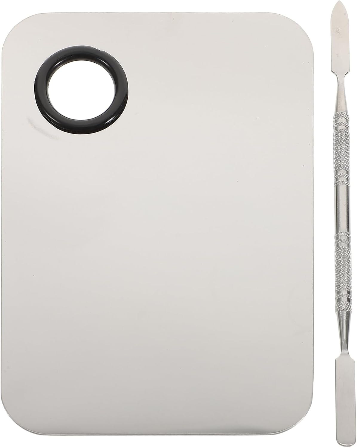 FOMIYES Makeup Palette, Makeup Mixing Palette, Stainless Steel Cosmetic Mixing Tray with Spatula Makeup Artist Tool for Mixing Foundation Nail-Art