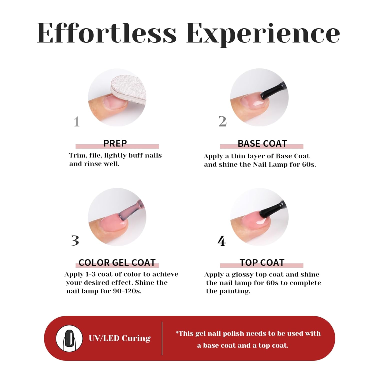 - Quick curing with nail lamp: To achieve the best results, this gel nail polish requires a nail lamp for curing. The light helps to speed up the drying process, ensuring a glossy and chip-resistant finish.