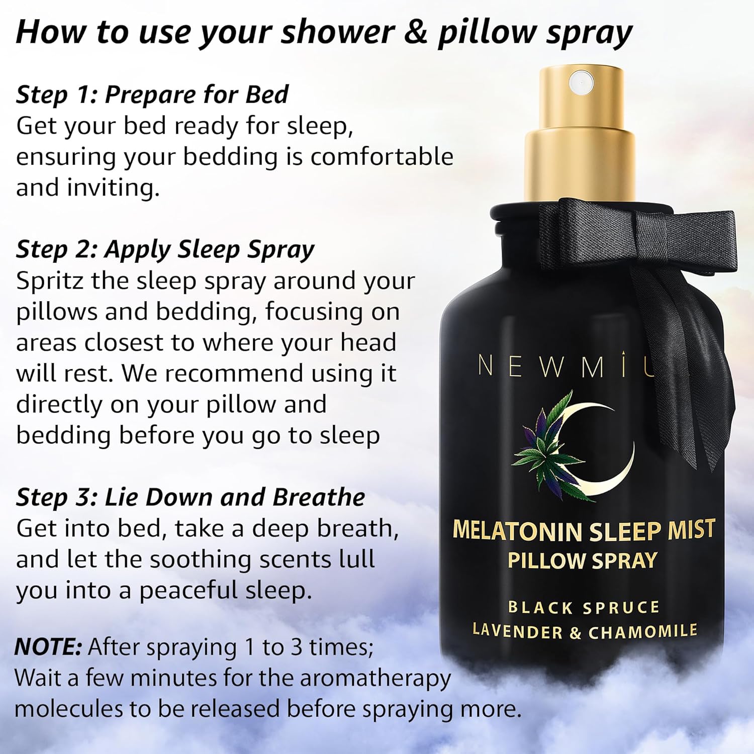 - HOW TO USE YOUR SLEEP SPRAY: Step 1: Get your bed ready for sleep, ensuring your bedding is comfortable and inviting.