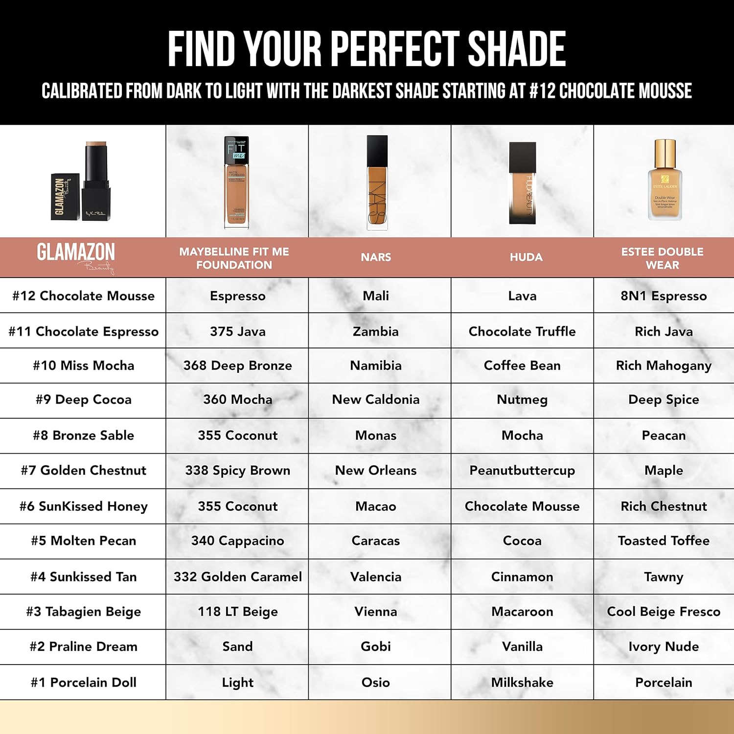 Glamazon Second to None Foundation Stick, Sunkissed Tan, Light-to-Full Coverage, Weightless Makeup With a Glowy Natural Finish