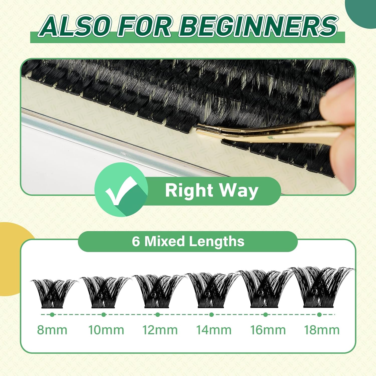 - 【Beginner-friendly Cluster Lash Kit 】The KEYYOU all-inclusive kit provides everything you need for effortlessly stunning lashes. From 144 thin band Cluster Lashes(8*1,10*2,12*3,14*3,16*2,18*1) to the Lash Bond and Lock, Cluster Lash Remover, Applicators, lash brush, we've got you covered from start to finish.