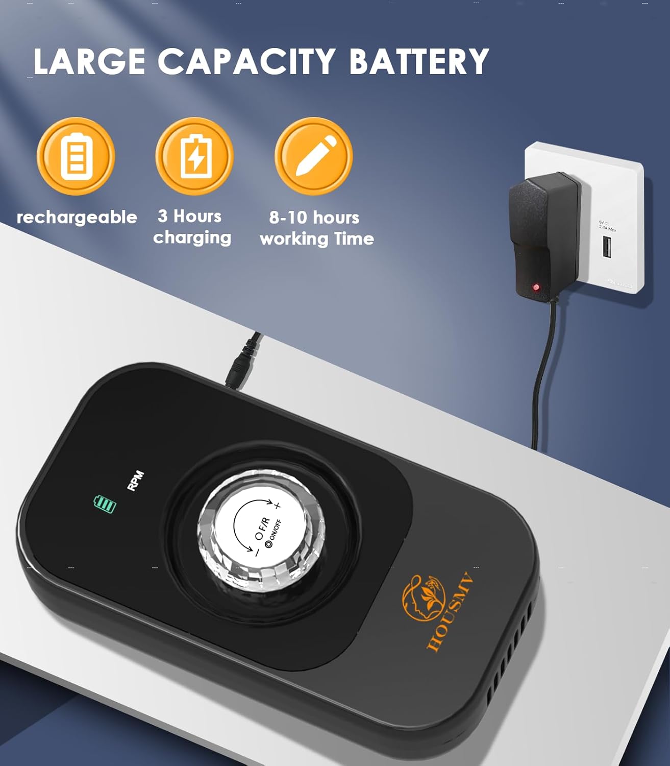 - ๐๐จ๐ง๐ -๐ฅ๐๐ฌ๐ญ๐ข๐ง๐ ๐๐๐ญ๐ญ๐๐ซ๐ฒ ๐๐ข๐๐: Our rechargeable nail drill features a large capacity battery, which offers 8-10 hours of usage just on 3 hours charge. The well-designed intelligent LCD display shows the rotation direction, speed, and remaining battery level, allowing you to conveniently adjust the speed and stay informed about the battery status.