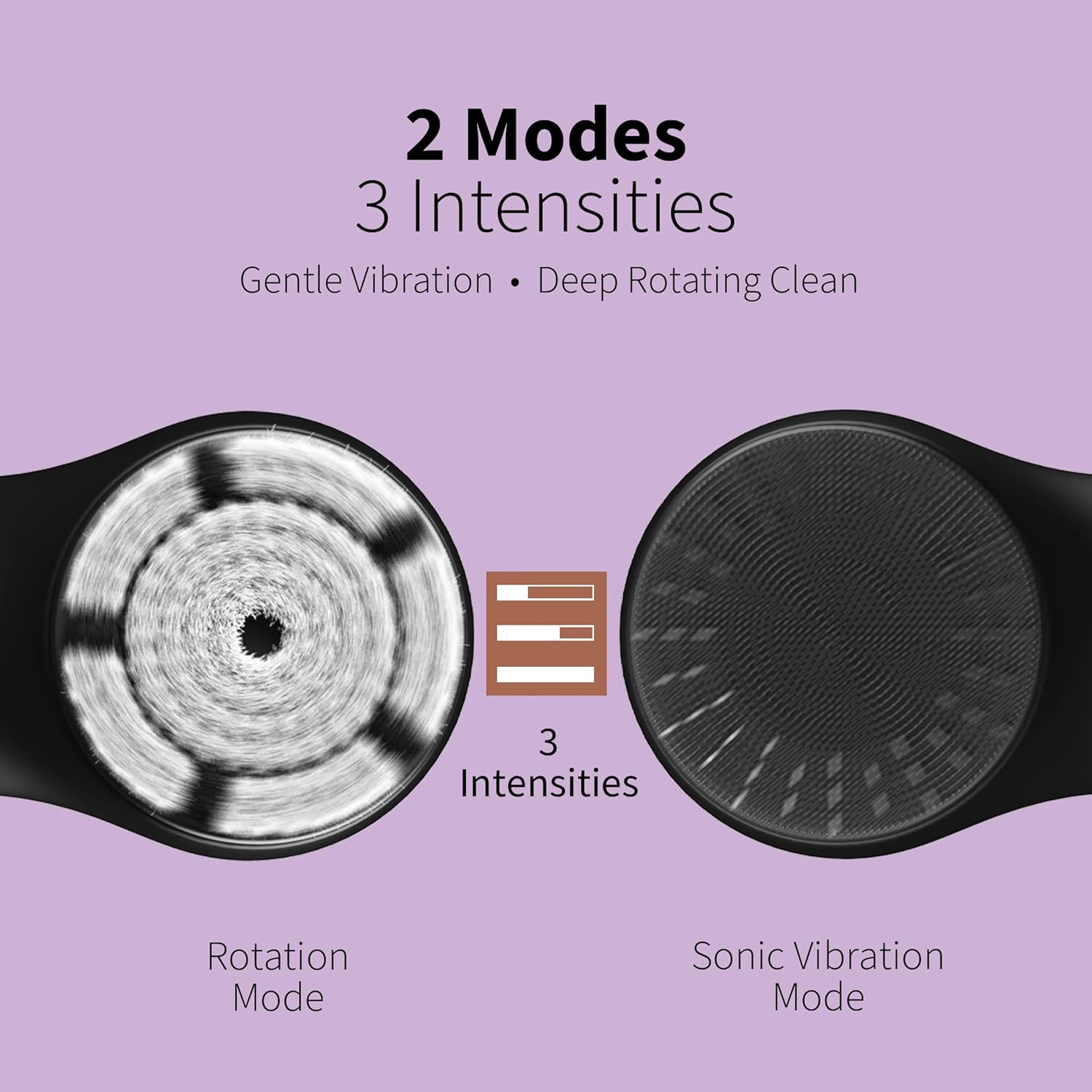 - Dual Cleansing Modes for Customized Care - Choose between sonic vibration with gentle silicone brush for a soft, soothing cleanse (perfect for sensitive skin) or rotation mode with the bristle heads for a deeper pore-purifying treatment.