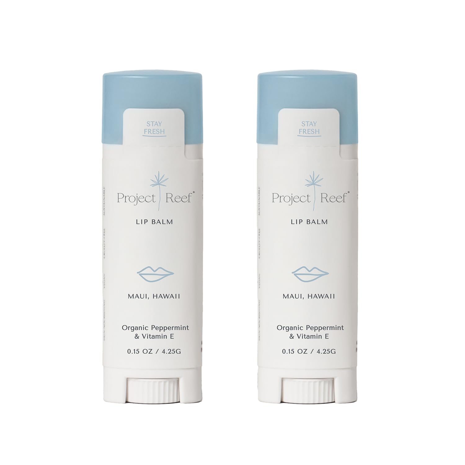 Cooling Lip Balm w/Organic Peppermint, Shea Butter, Vitamin E, Hydrating Chapstick, Soothe Dry Sunburnt Lips, After Sun Care, 2 Pack
