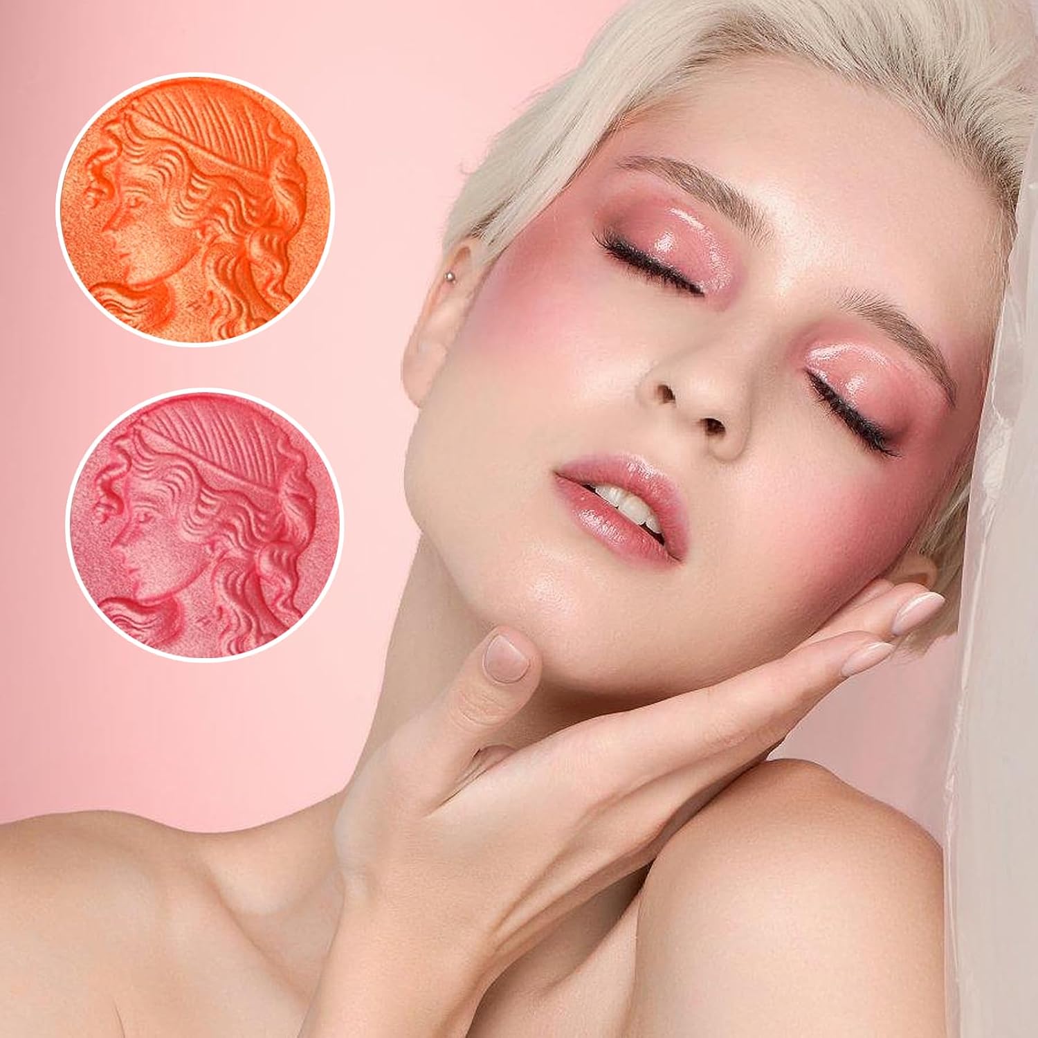 Embossed Smooth Powder Blush Palette for Cheeks, Powder Blush Palette, Embossed Girl Blush for Cheeks, Matte Face Powder Blush Palette (Pink+Orange)