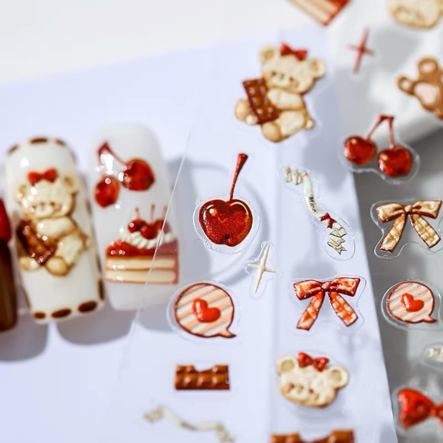 Dedyel Cute Nail Stickers 5D Embossed Cartoon Bear Kawaii Animal Self-Adhesive Nail Decals for Women Girls Kids Nail Art Decoration