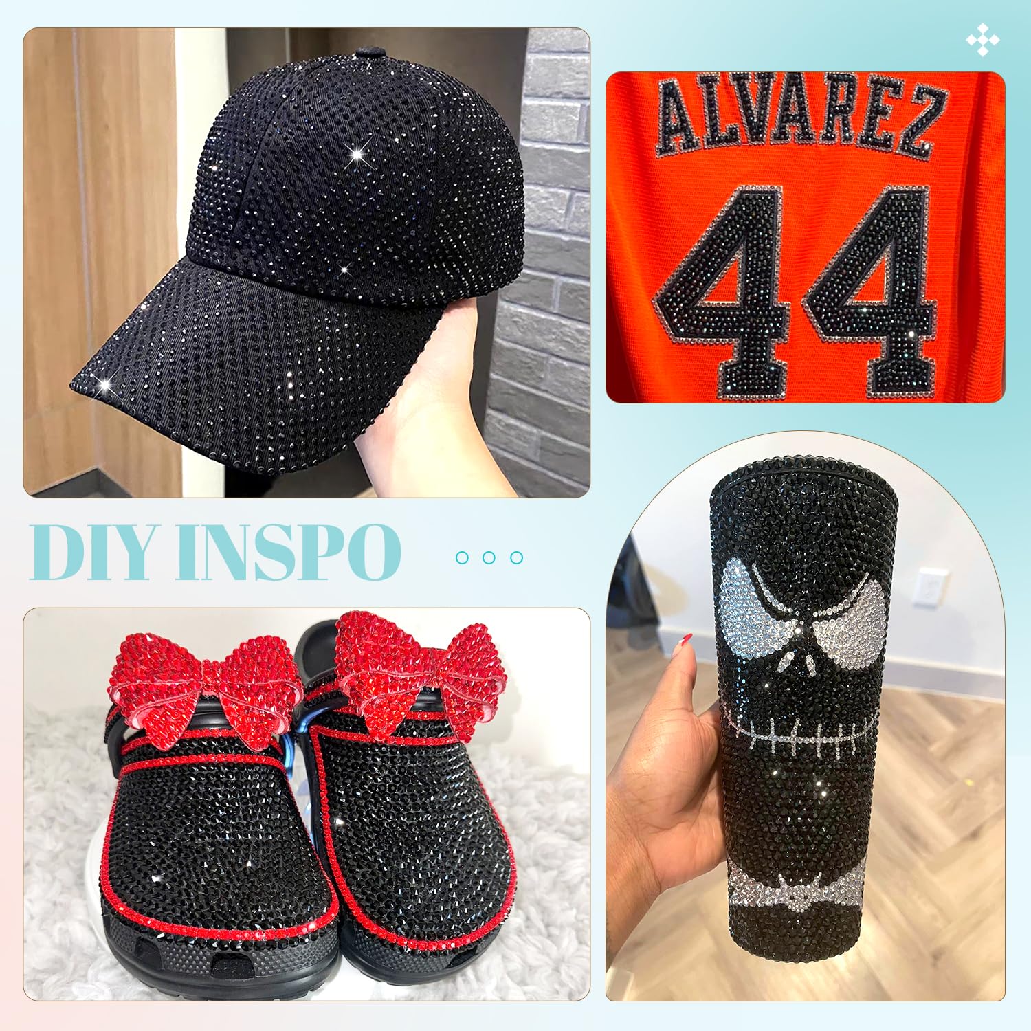 - 💎WIDE APPLICATION -- These sparkling iridescent resin crystals are perfect for creating dazzling looks. Use them for bedazzling DIY crafts like shoes, tumblers, mugs, bottles, phone cases, popsockets, scrapbooks, photo frames, diamond paintings, greeting cards, bags, glasses, guitars, keychains, hats, masks, hair clips, bracelets, wristbands, clothing, wedding dresses, and more. Apply it to what you want to bling!