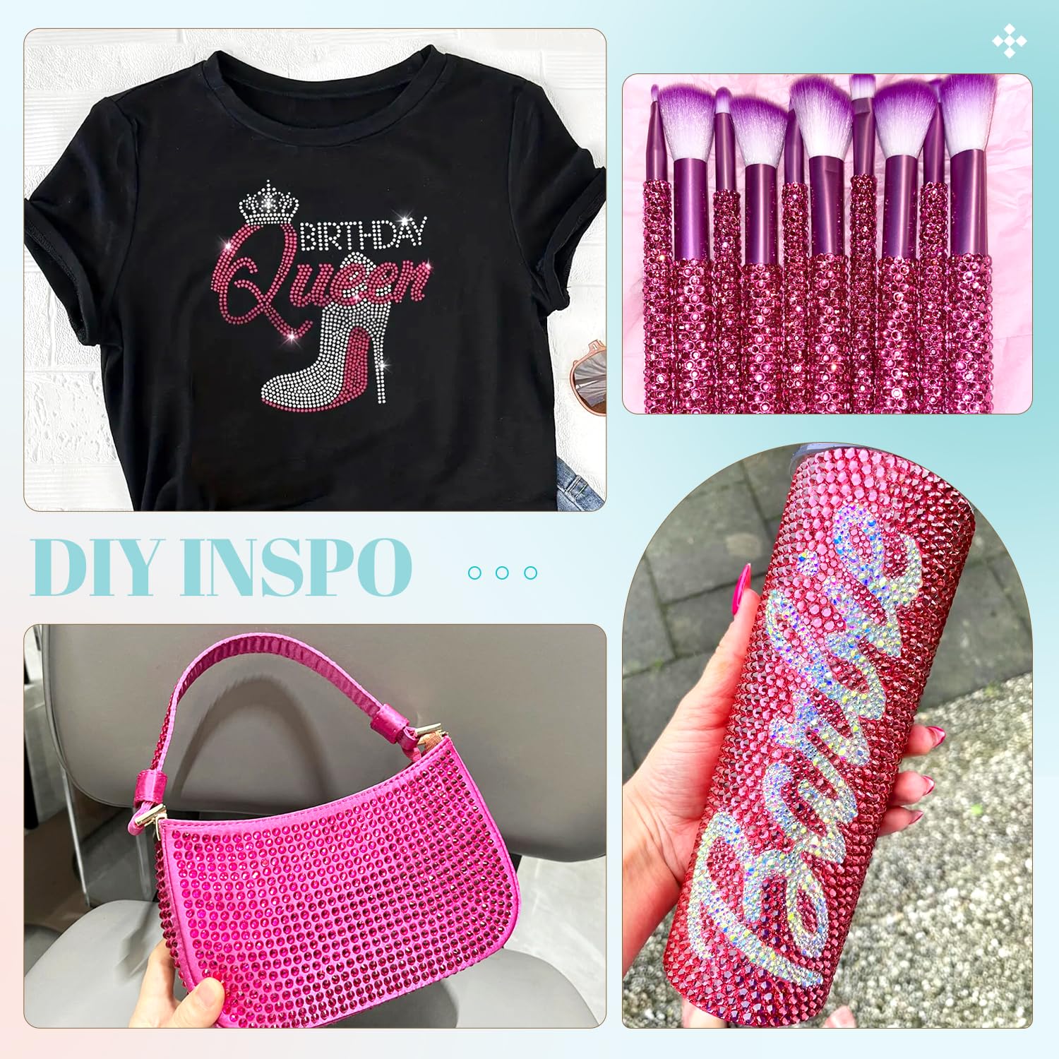 - 💎WIDE APPLICATION -- These sparkling iridescent resin crystals are perfect for creating dazzling looks. Use them for bedazzling DIY crafts like shoes, tumblers, mugs, bottles, phone cases, popsockets, scrapbooks, photo frames, diamond paintings, greeting cards, bags, glasses, guitars, keychains, hats, masks, hair clips, bracelets, wristbands, clothing, wedding dresses, and more. Apply it to what you want to bling!