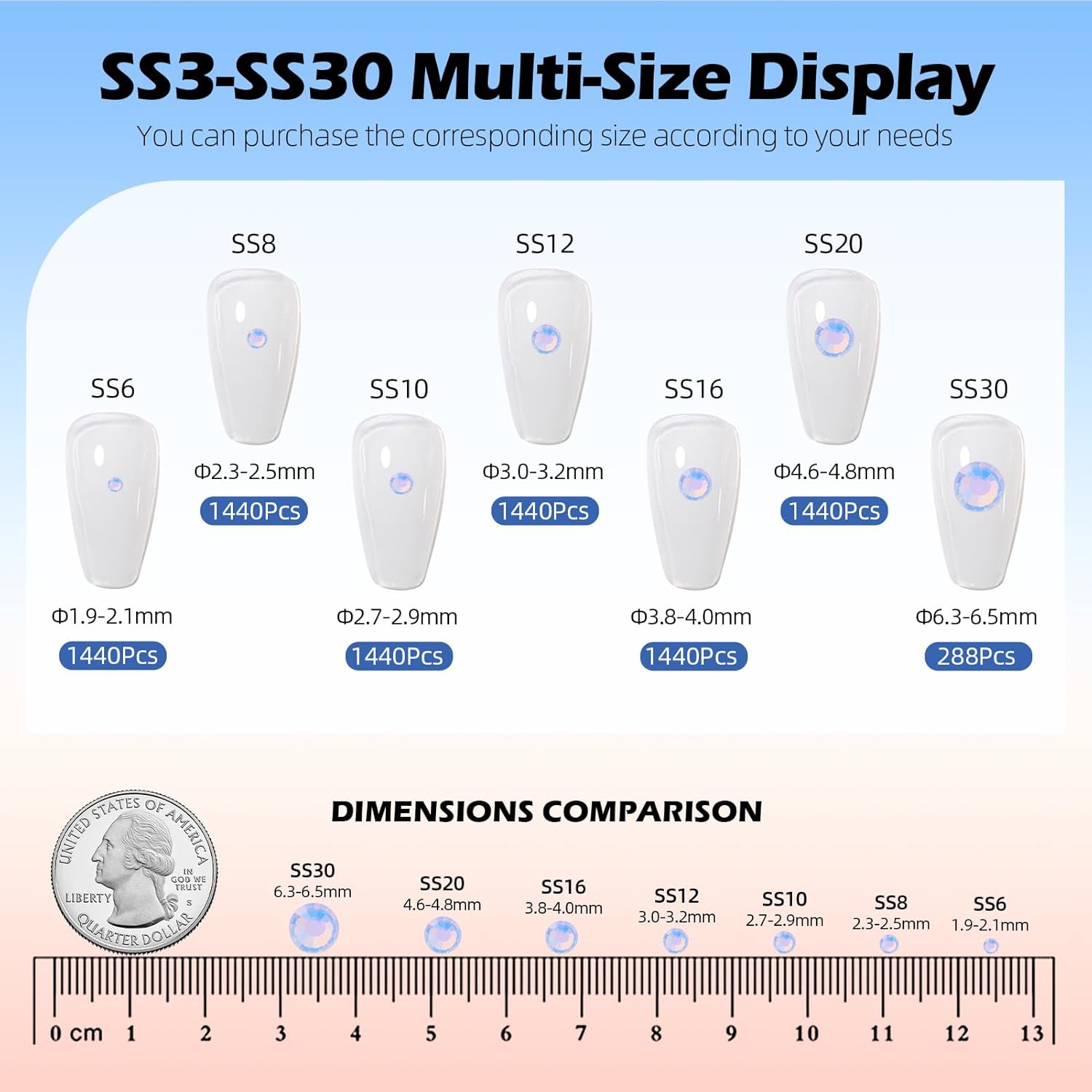 - Product Packaging: Bags packaging SS8 2.3~2.5 MM - 1440 Pcs F Light blue flatback rhinestones