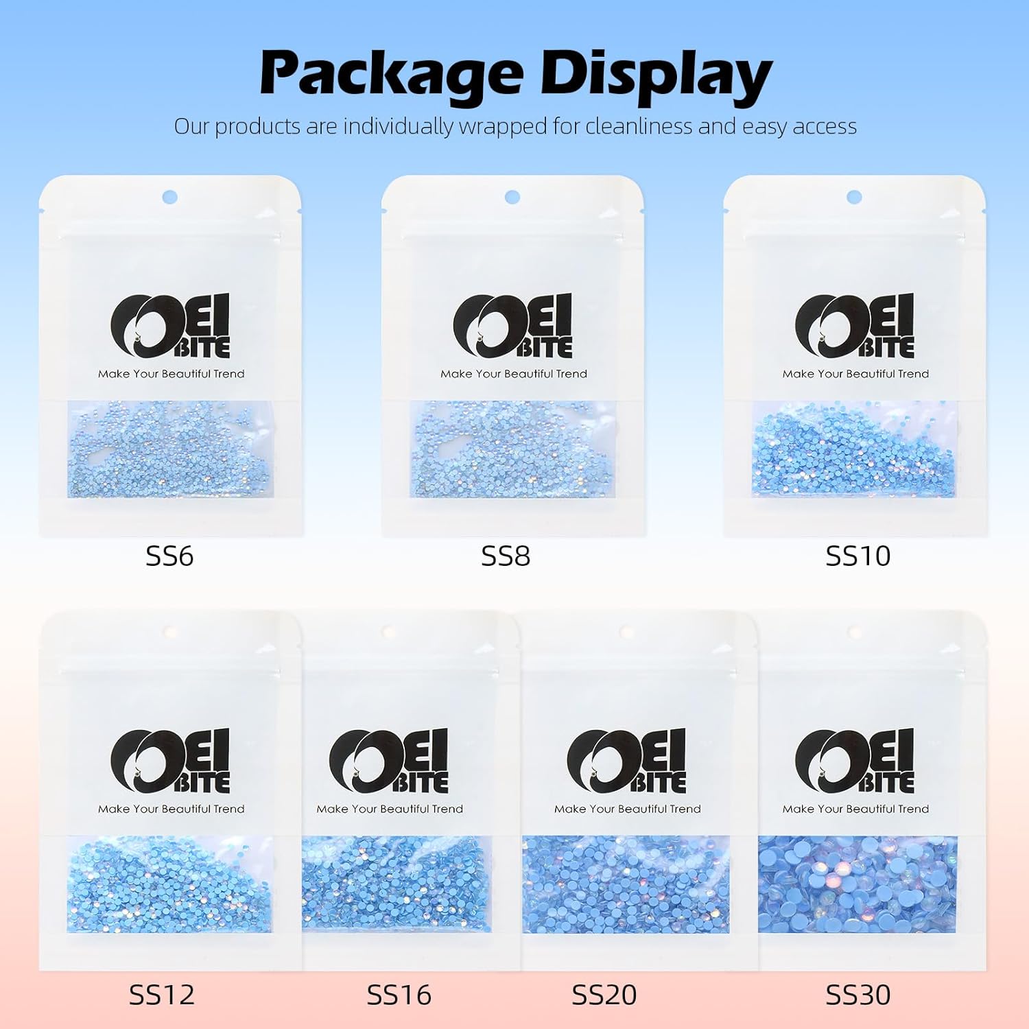 - Product Packaging: Bags packaging SS30 6.4~6.6 MM - 288 Pcs F Light blue flatback rhinestones