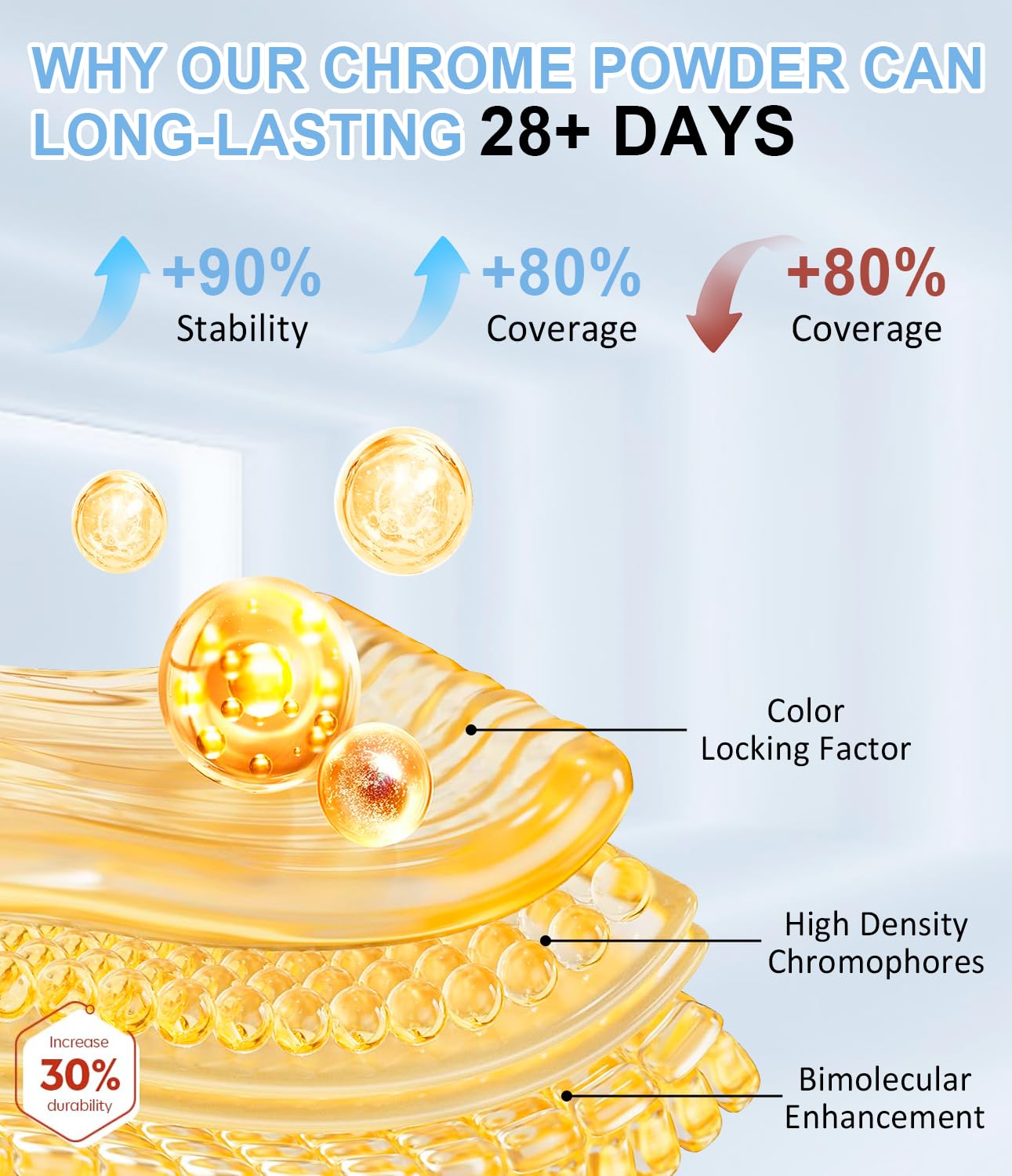 - DISTINCTIVE PEARL CHROME POWDER: Our powder is a newly upgraded super transparent pearl chrome nail powder. The brightness and shiny is better than the old version, this powder is non-toxic, harmless, especially durable, vegan and harmless. Elevate your nail art with our superior quality chrome powder set that effortlessly creates mesmerizing mermaid chrome effects.