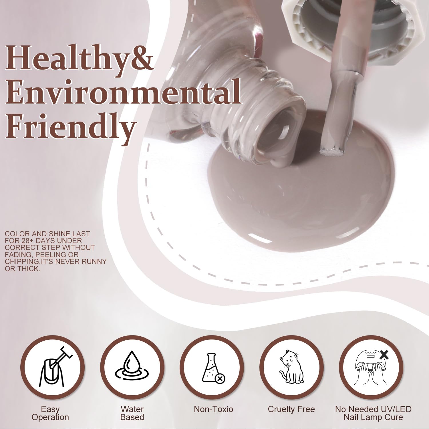- NOTE: This nail polish is resistant to chipping and peeling, but for a longer-lasting shine, we recommend applying a top coat to keep the gloss for over 15 days!