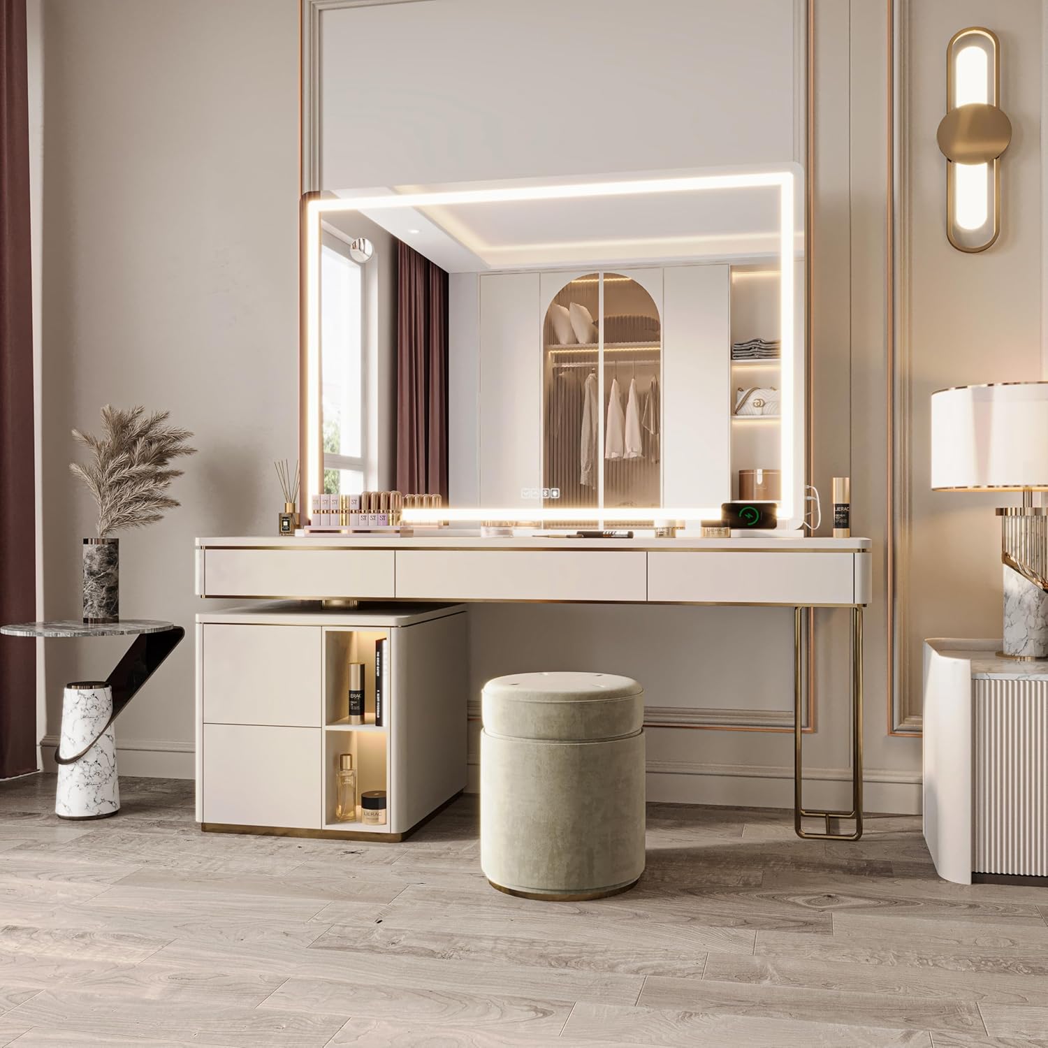 - 👍【Brightness Adjustable and 3 Color Lighting Modes】HASIPU lighted makeup mirror surrounded by 50,000 hours life Max 6000 Lumens high brightness LED Light Strip, with warm /natural /cold white three-tone settings, adjustable brightness 0%-100% can meet your makeup requirement.