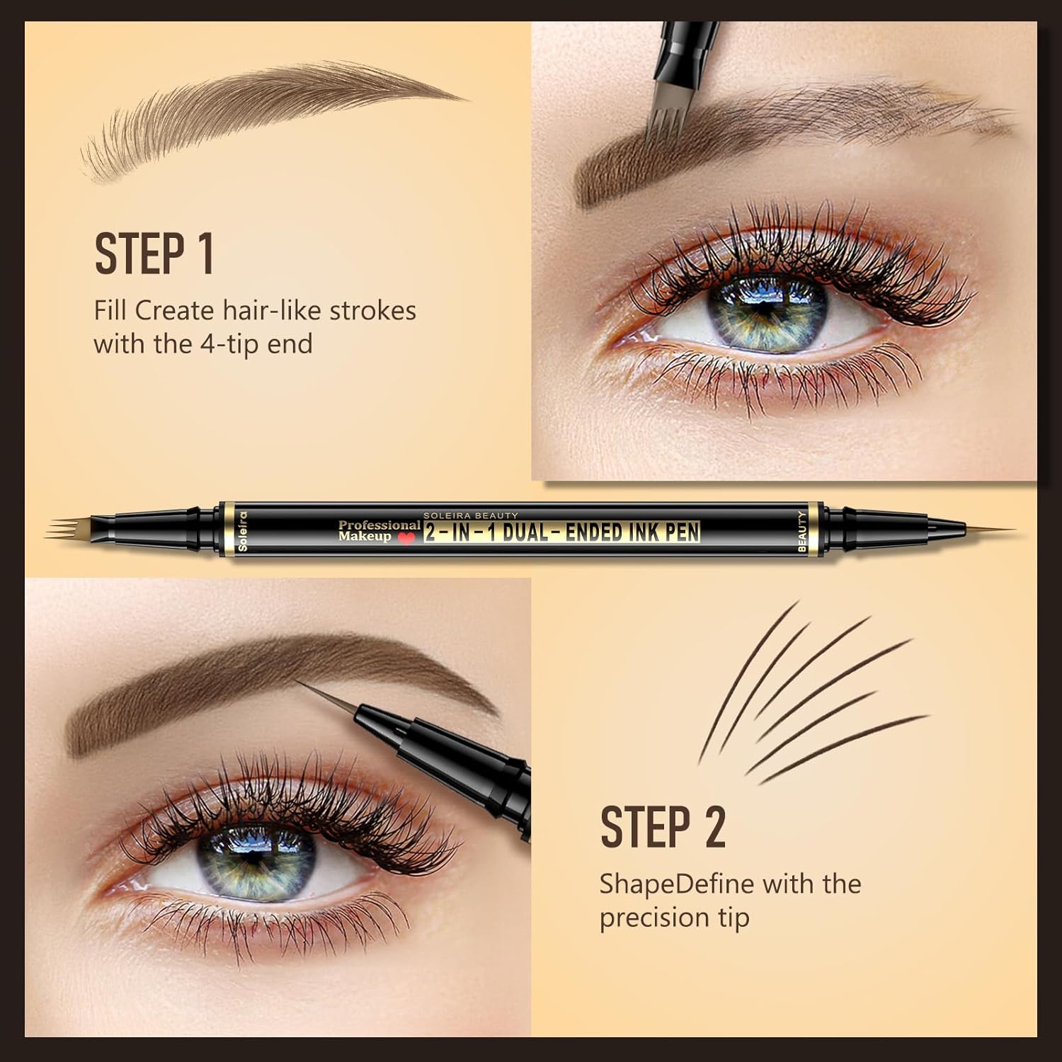 - Dual-Ended Design: This eyebrow kit includes a 4-tip microblading eyebrow pen for natural, hair-like strokes and a single precision tip for shaping. It also comes with a dual-ended brow brushโone end for blending, the other for perfecting finer details. Achieve flawless brows effortlessly