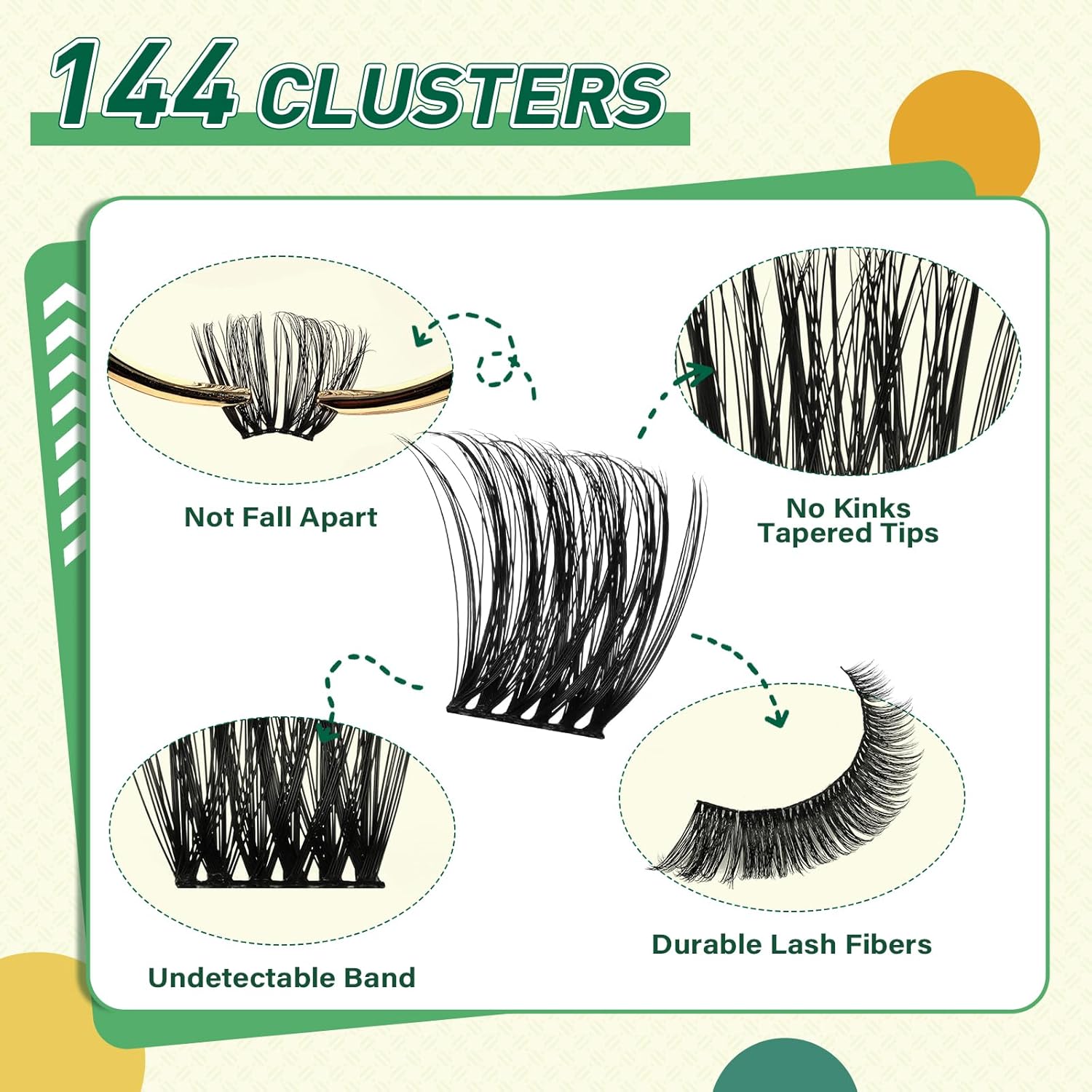 - 【144pcs High Quality Cluster Lashes】The simulated eyelash material is more realistic and will not feel plastic, comfortable and non-irritating on the eyes, allowing you to easily maintain a perfect makeup all day long.