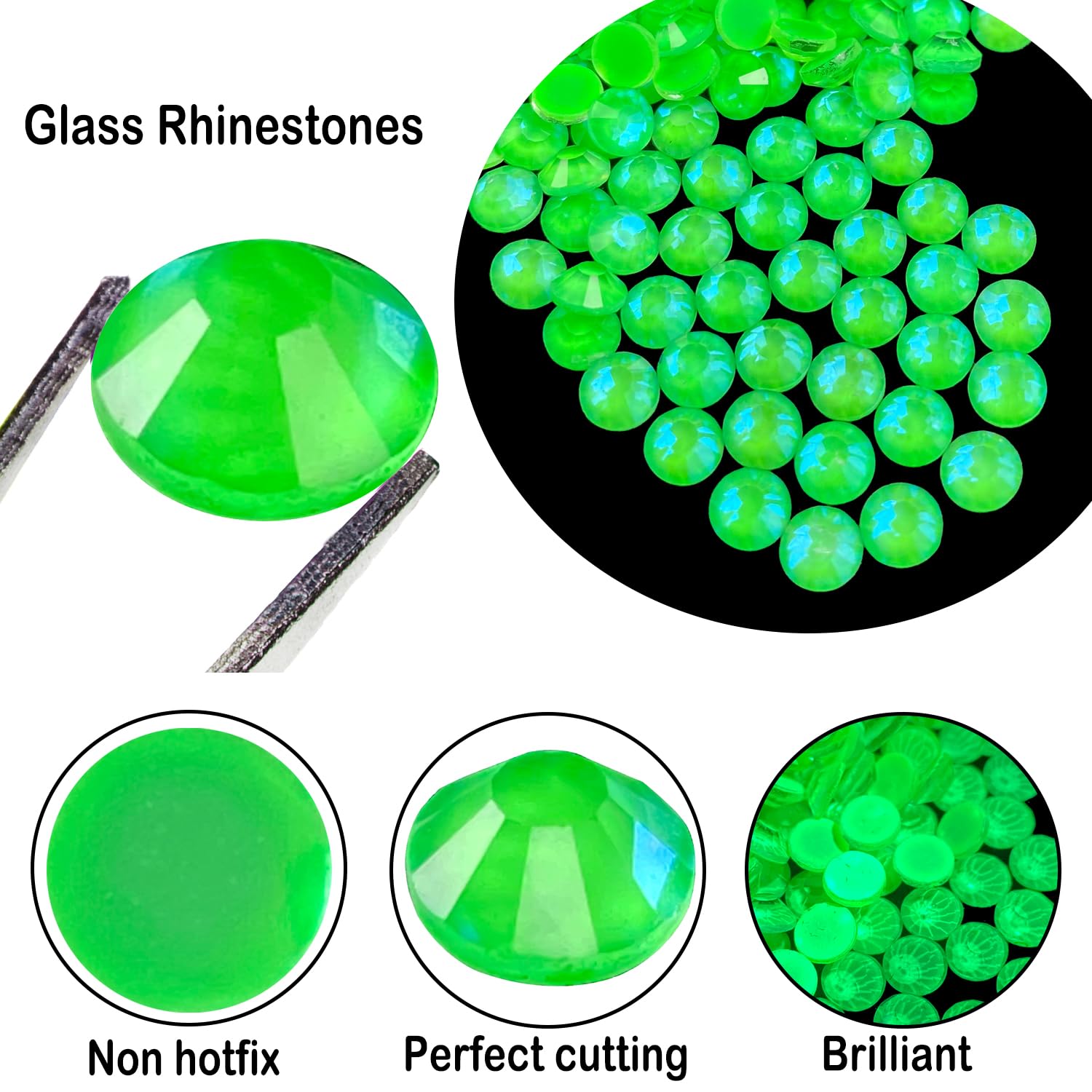 Flatback Glass Rhinestones,Bedazzler Gems 1440pcs Non Hotfix Crystal Rhinestones for Nail Charms Crafts Clothes Tumblers,Green AB Neon,SS16