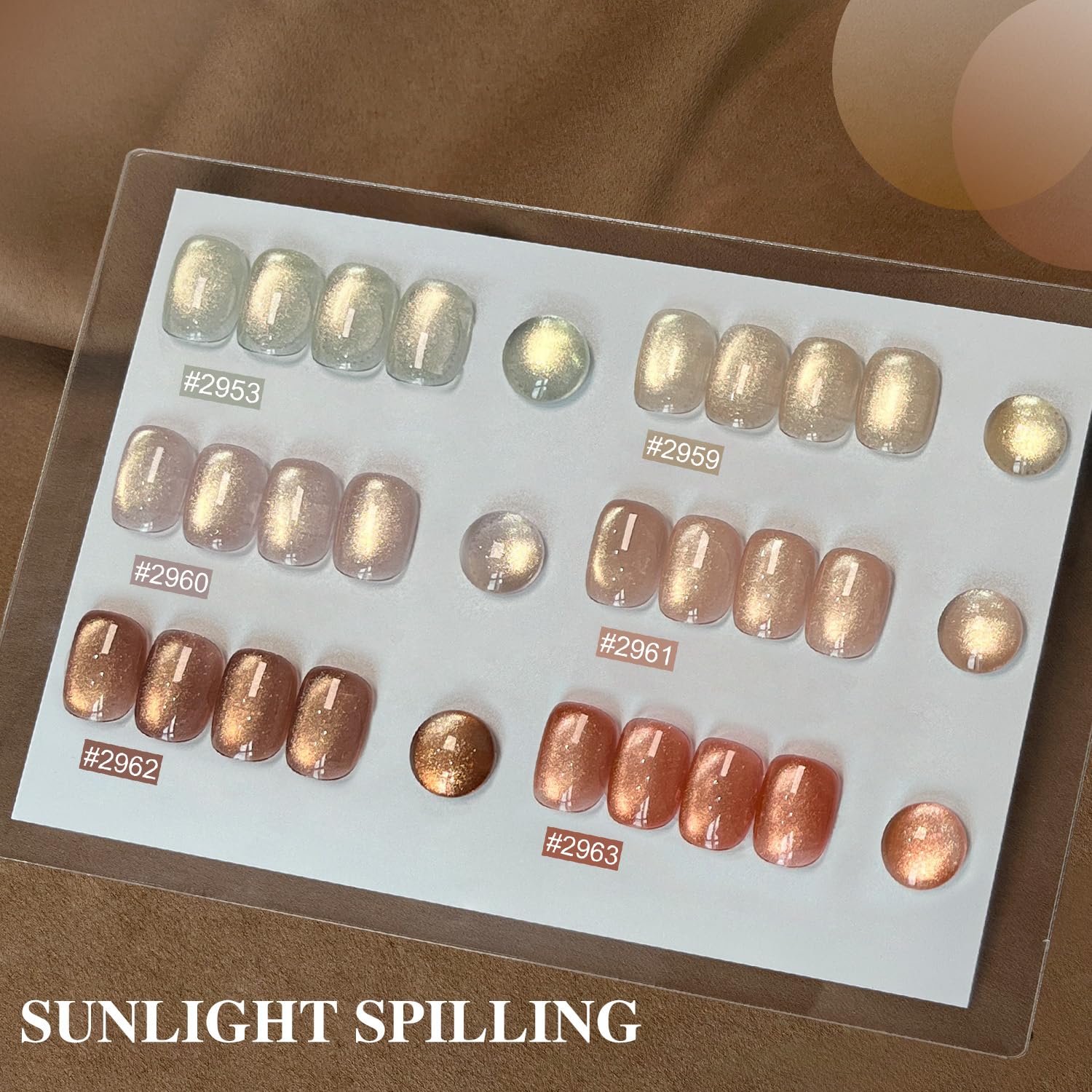 GAOY Glitter Cat Eye Gel Nail Polish Set with Magnet, Sliver, Brown, Pink, Coral Holographic Cat Eye, Salon Gel Manicure and Nail Art DIY at Home, Sunshine