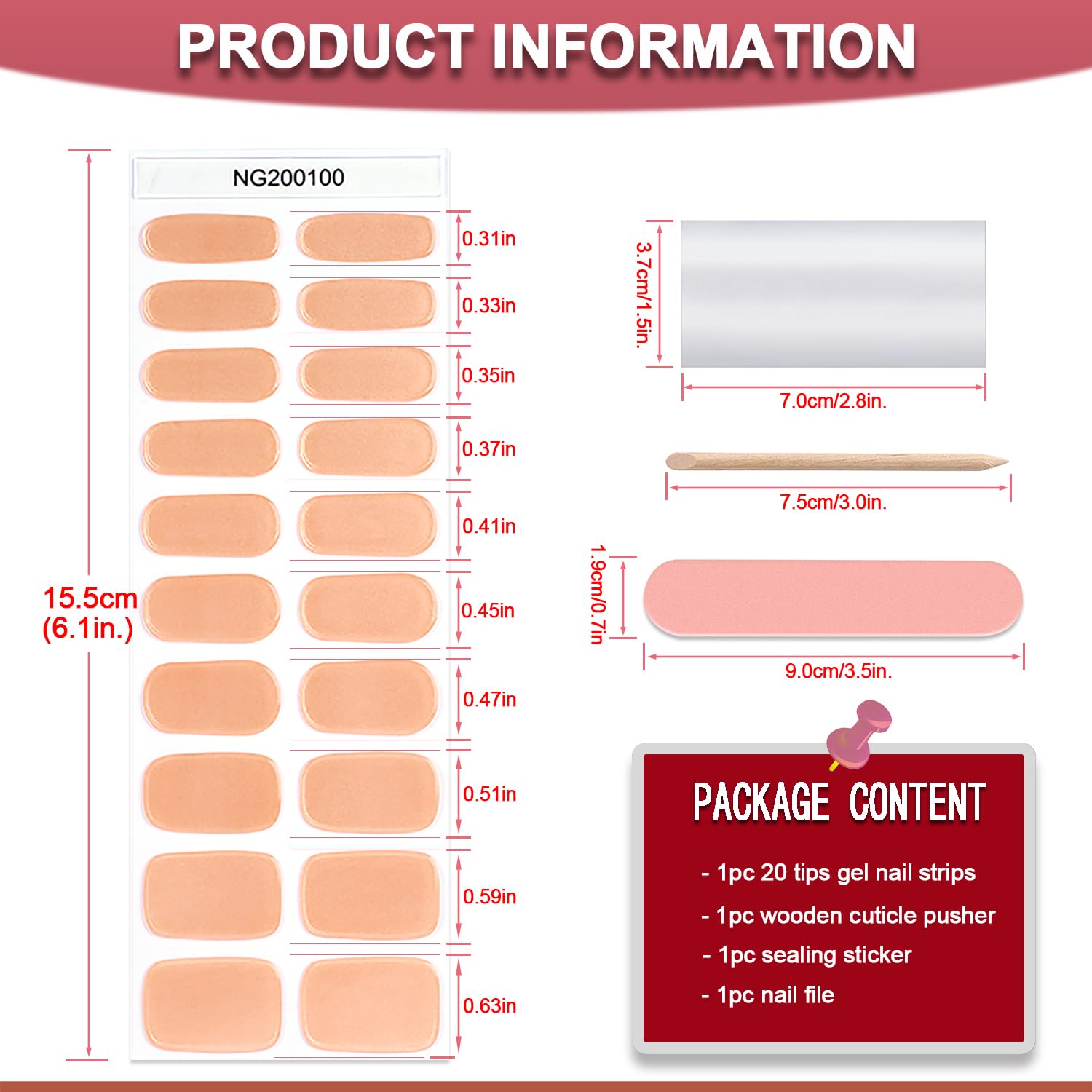 - [ 20 GORGEOUSLY THICK NAIL POLISH STRIPS ] - Package Content 20 Tips Chrome peach pink semi cured nail polish stickers with 10 different sizes to ensure that fit for the most of nails, if you are good at use sissors, you can also cut the tips too big to be the size fitted, or share this good products with family or friends.