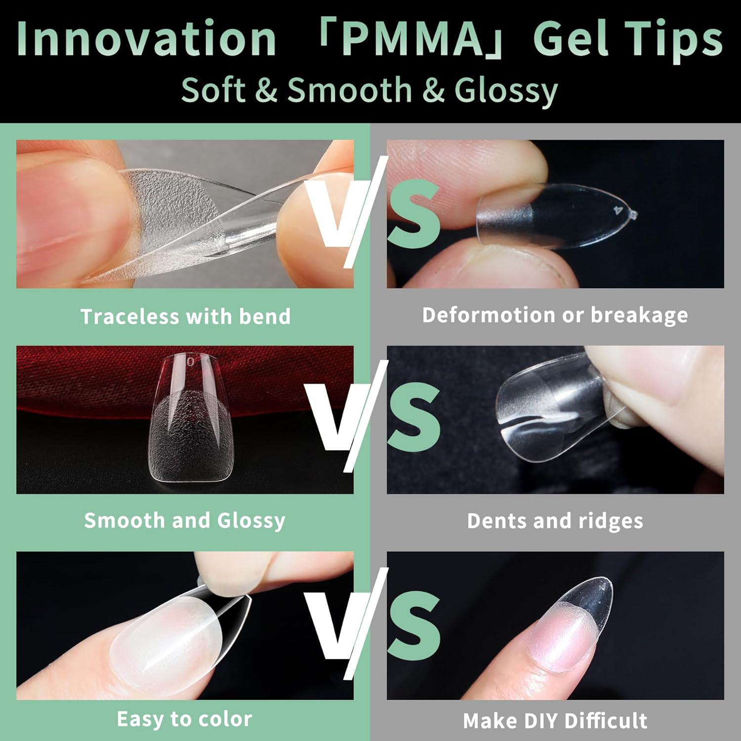 - No Trace Soft Gel Nail Tips: Crafted from gelly soft gel material, these fake nails leave no trace even when bent. Their bright clarity allows for easy pressing, trimming, and painting, helping you create your ideal nail shape effortlessly. Perfect for a true DIY manicure.