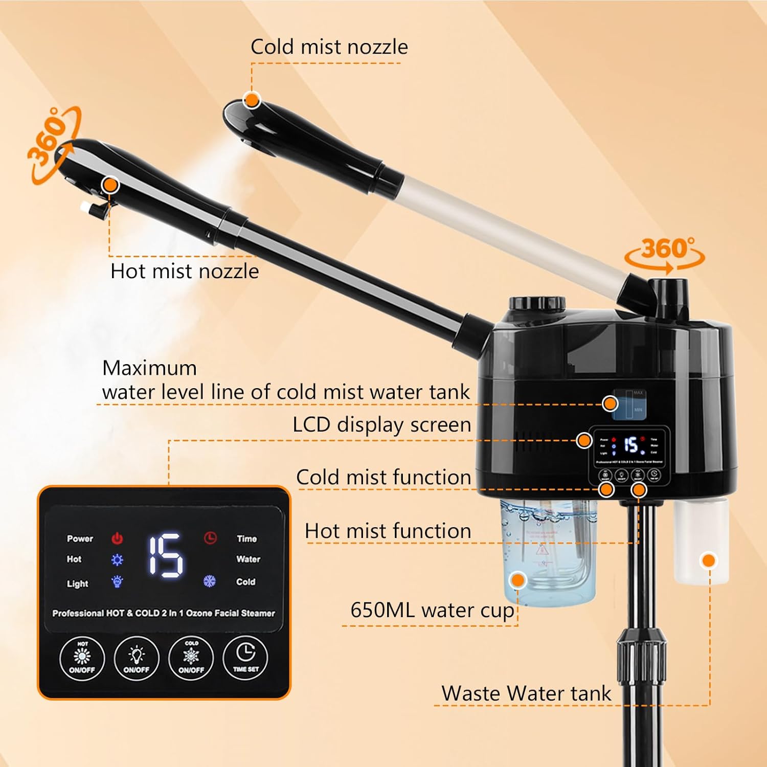 - Professional Facial Steamer: Hot & cold mist facial steamer designed for esthetician facial steamer and home users, providing spa facial steam treatment, cold mist and hot mist optional to give skin deep cleansing and care skin rejuvenation