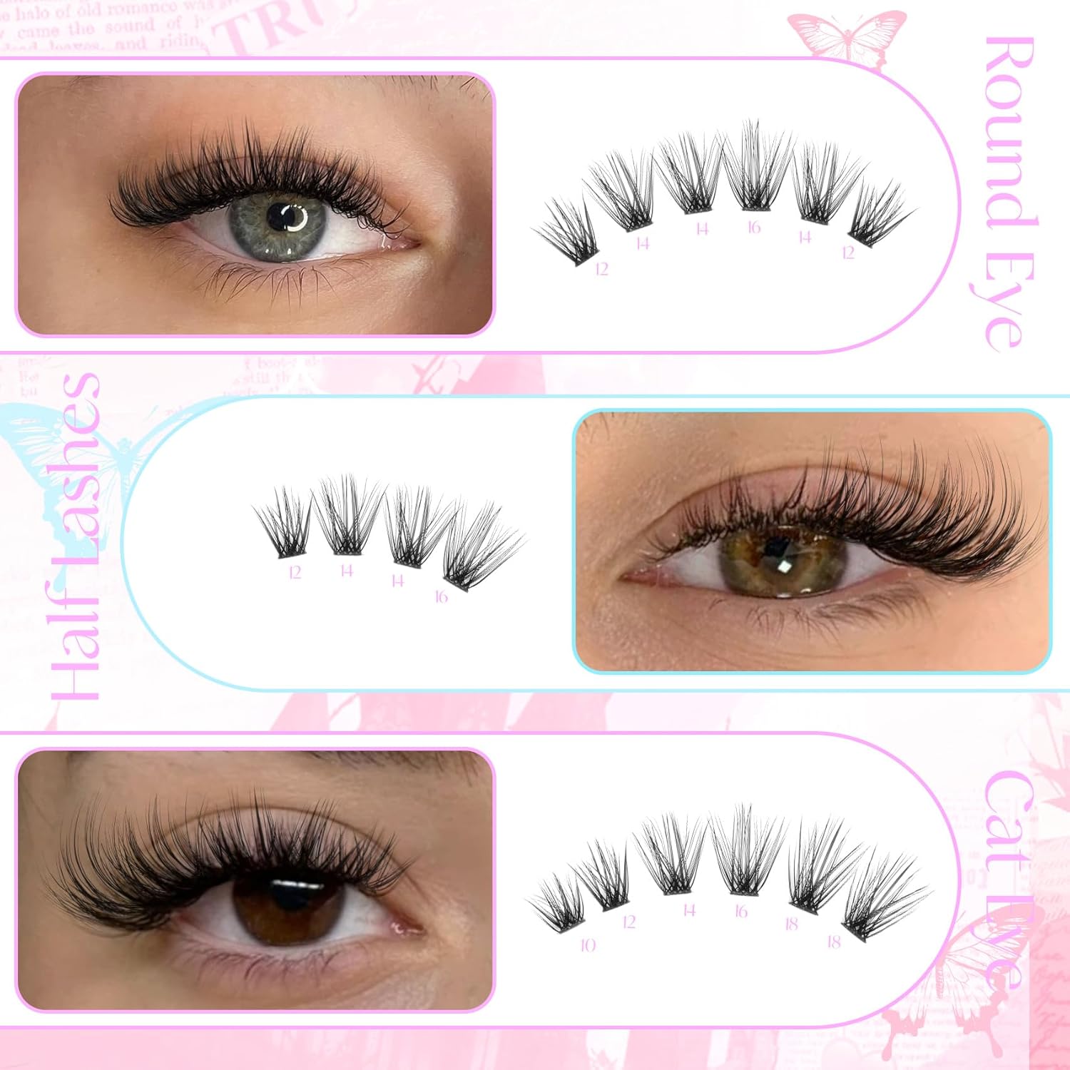- Fluffy natural lash clusters kit - The new technique gives each wispy eyelash clusters a fluffy effect. Each lash clusters has 50 individual lashes, adding wispy voluminous volume, giving you a perfect, glamorous, enchanting look.