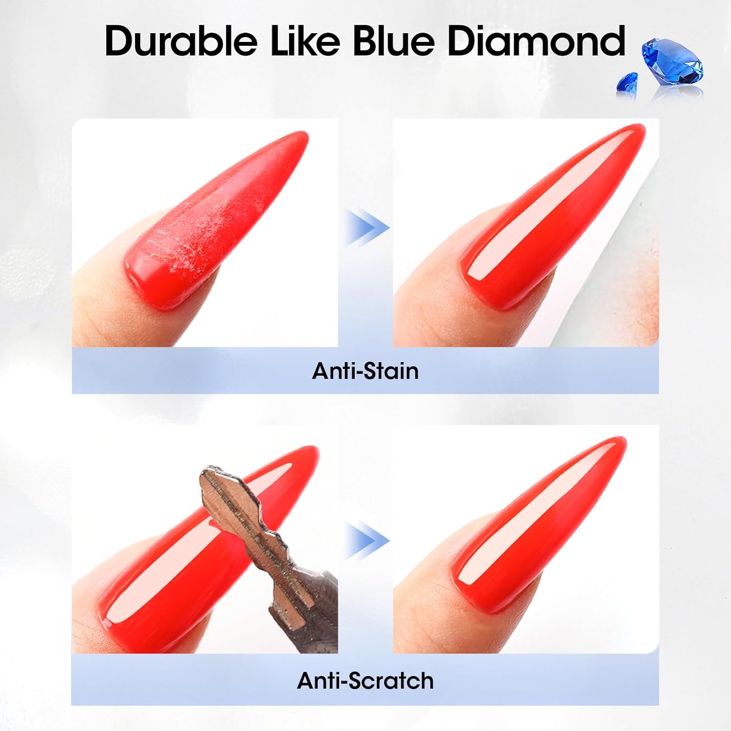 - Newly & Upgraded Nail Gel: Gellen launches the newly blue diamond builder top coat. It can be used as builder gel for building nail apex, glossy top coat gel for shiny nails and chrome nails, 3D nail gel for ripple nails. The 20ml bottle offers great value and features a sleek chrome silver design, perfect for gifting.