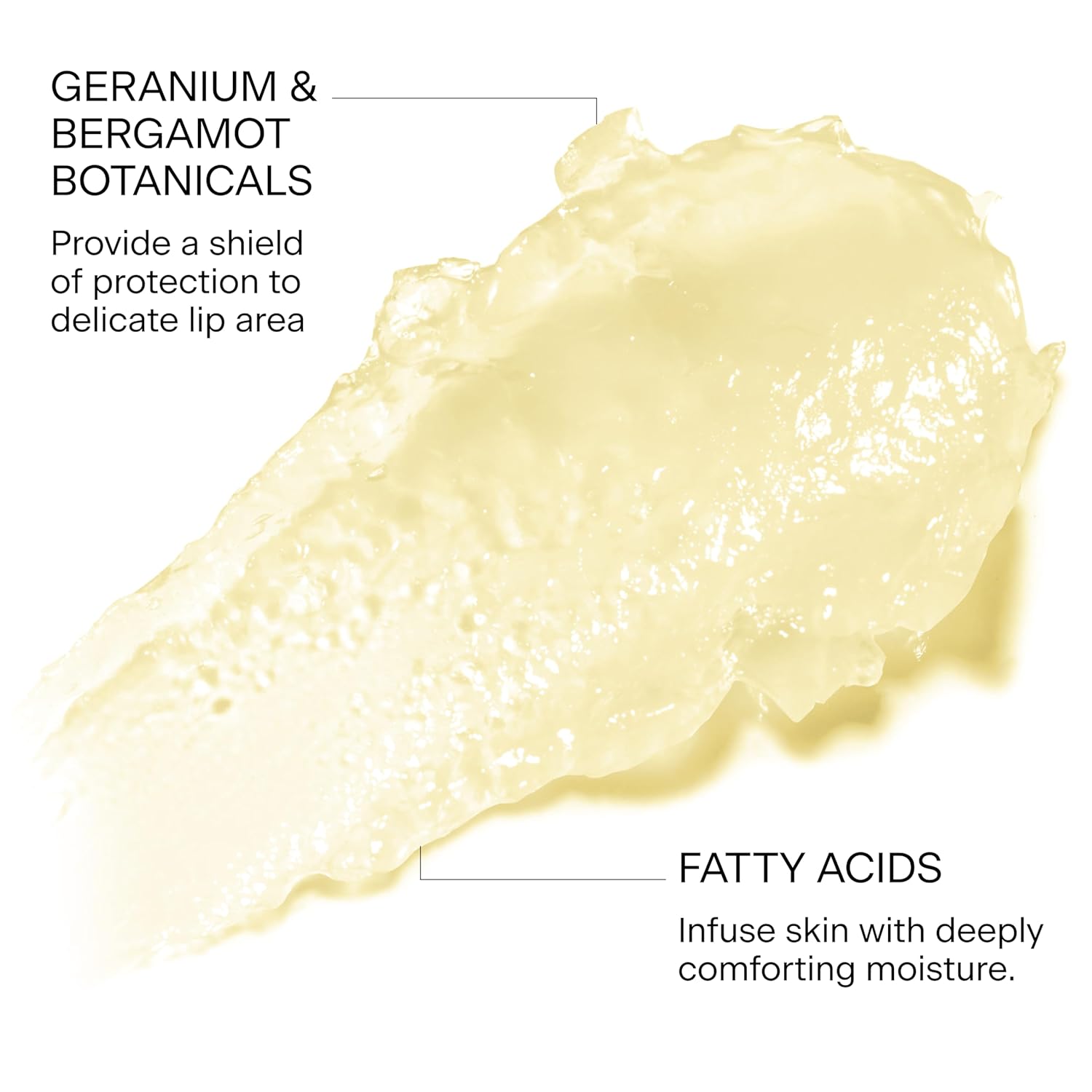 - Formulated with lip-loving ingredients - Fatty Acids, Geranium, Bergamot and Squalane to infuse delicate skin with deeply moisturizing comfort for the softest lips imaginable.