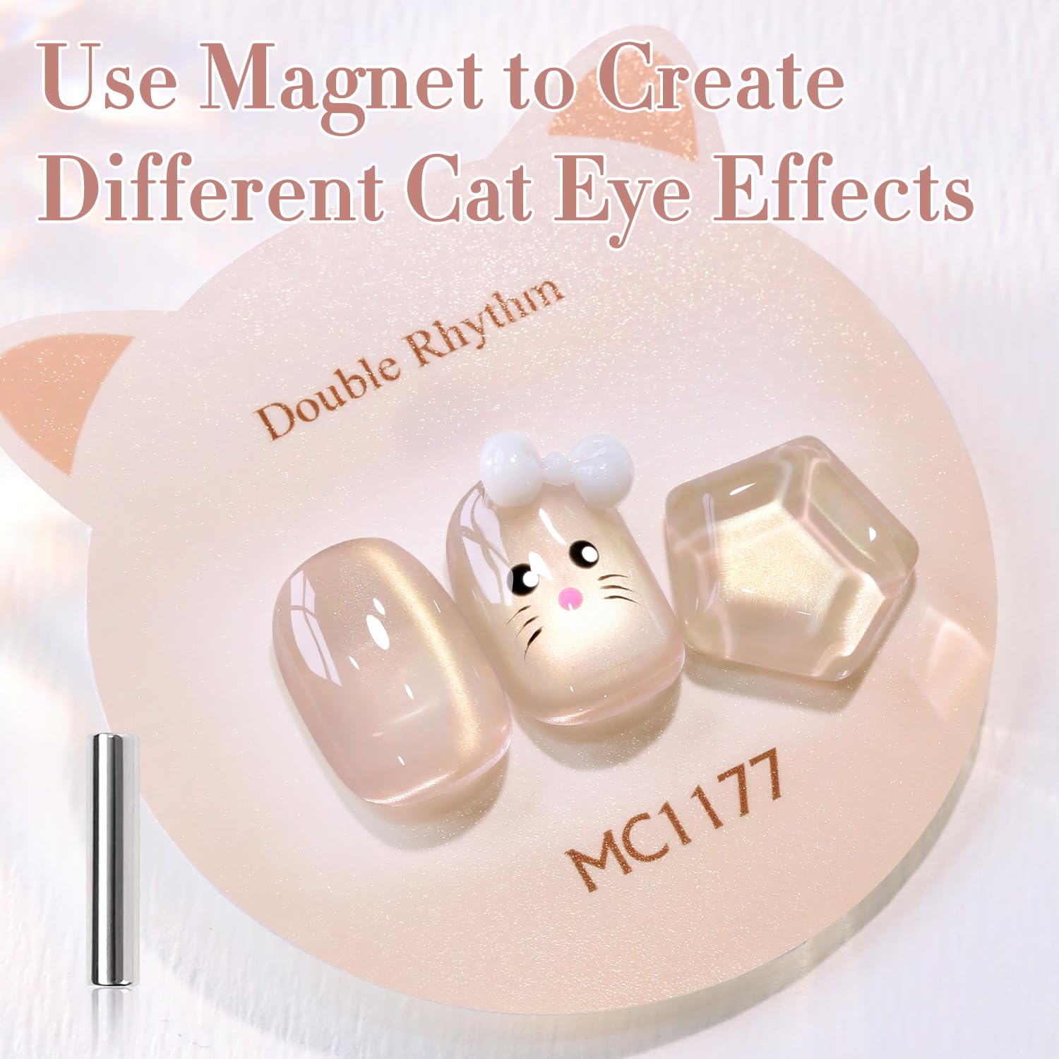 - Same Color Same Bollte Cat Eye Gel Nail Polish : Double Rhythm cat eye gel nail polish kit includes 1 color 15ml / 0.5 fl.oz gel nail polish. The cat eye gel can be combined with different bacse colors arbitrarily, you can get different colors nail art.You can use different base color to creat different sytles.