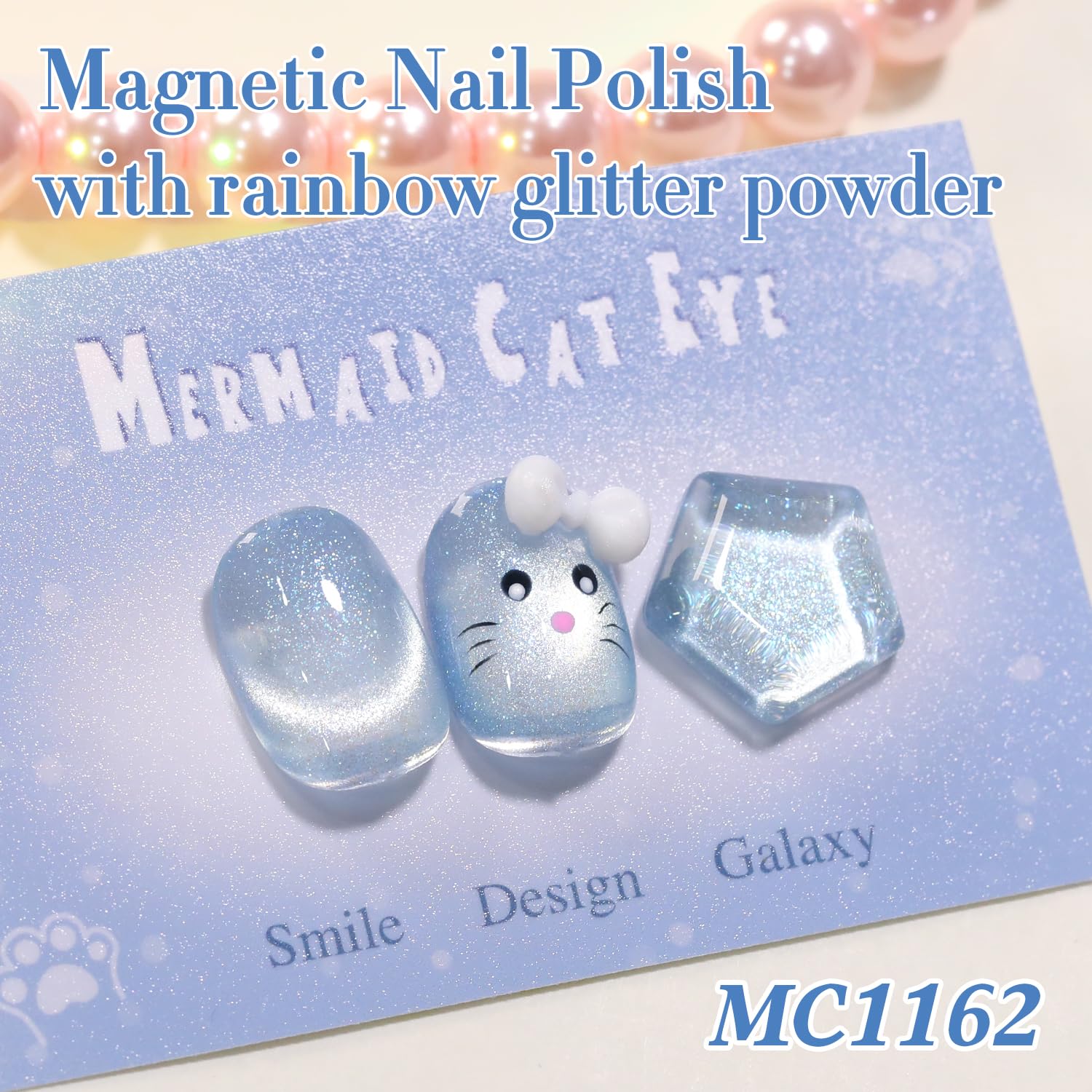 Double Rhythm 0.5 Oz Cat Eye Gel Polish with Magnet Same Color Same Bottle Holographic Glitter Shimmer Translucent Color Salon 15 ML Magnetic Nail Art (Mermaid Blue-MC1162)