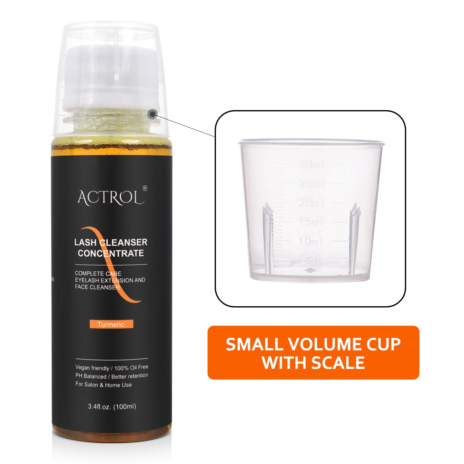 Eyelash Shampoo Concentrate 100ml Lash Extensions Cleanser Concentrate Turmeric Foaming Shampoo Paraben & Sulfate Free Wash for Extensions Lashes with Salon Home Care-Makes 60ml Bottles