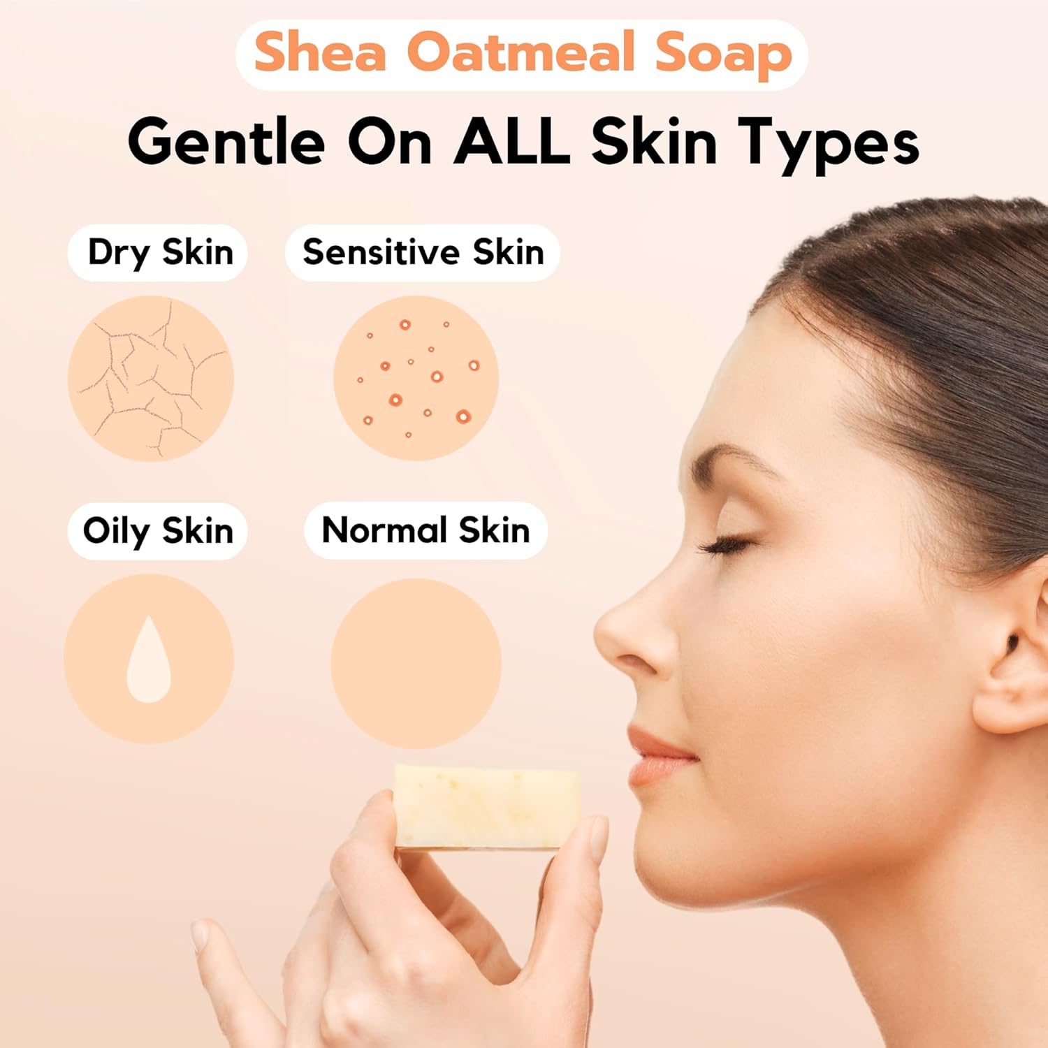 - Shea Butter + Coconut Oil Hydration: Infused with shea butter and coconut oil, this moisturizing soap deeply nourishes and softens, while oatmeal gently exfoliates for smoother, calmer skin — a great alternative to shea moisture soap bars.