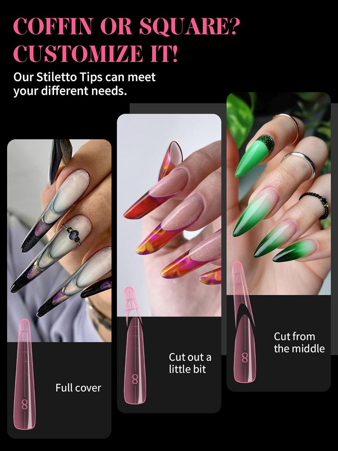 - 【Sturdy No C Curve Gel Nail Forms】Reusable extra long nail molds are made with high quality material, which is strong, tough, and reusable, providing you with a different lengths nail art experience that lasts.This artificial nails forms protective sleeve has a small handle on both sides, which is convenient for constructing gel nail extension nails, and will not stick to your hands, and can be easily removed after application.