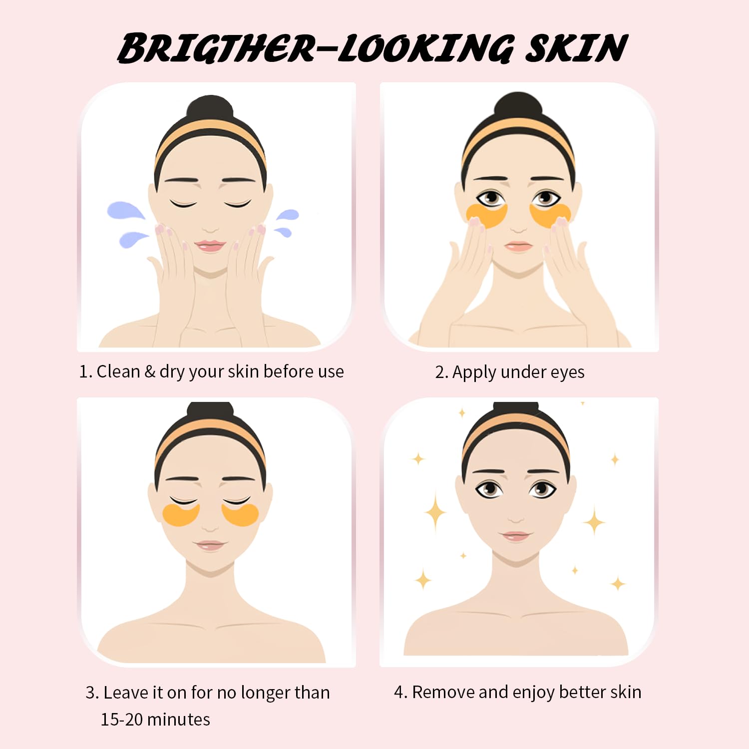 - Easy to Use: For a quick and effective eye treatment, simply cleanse your face with warm water, place our eye patches under your eyes, relax for 15-20 minutes, and then remove the patches. Gently massage the remaining serum into your skin to fully absorb the nourishing ingredients and reveal refreshed, revitalized eyes.
