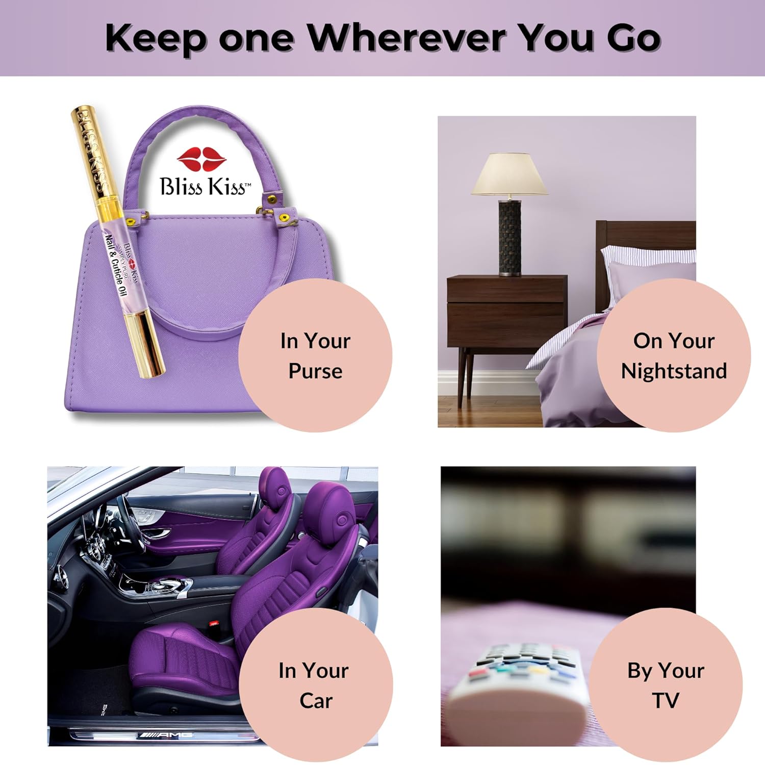 - Mess-Free, On-the-Go Application – The Bliss Kiss cuticle oil pen allows for precise, controlled nail strengthener and growth serum application without spills. Convenient nail growth oil for use at home, the office, or on the go.