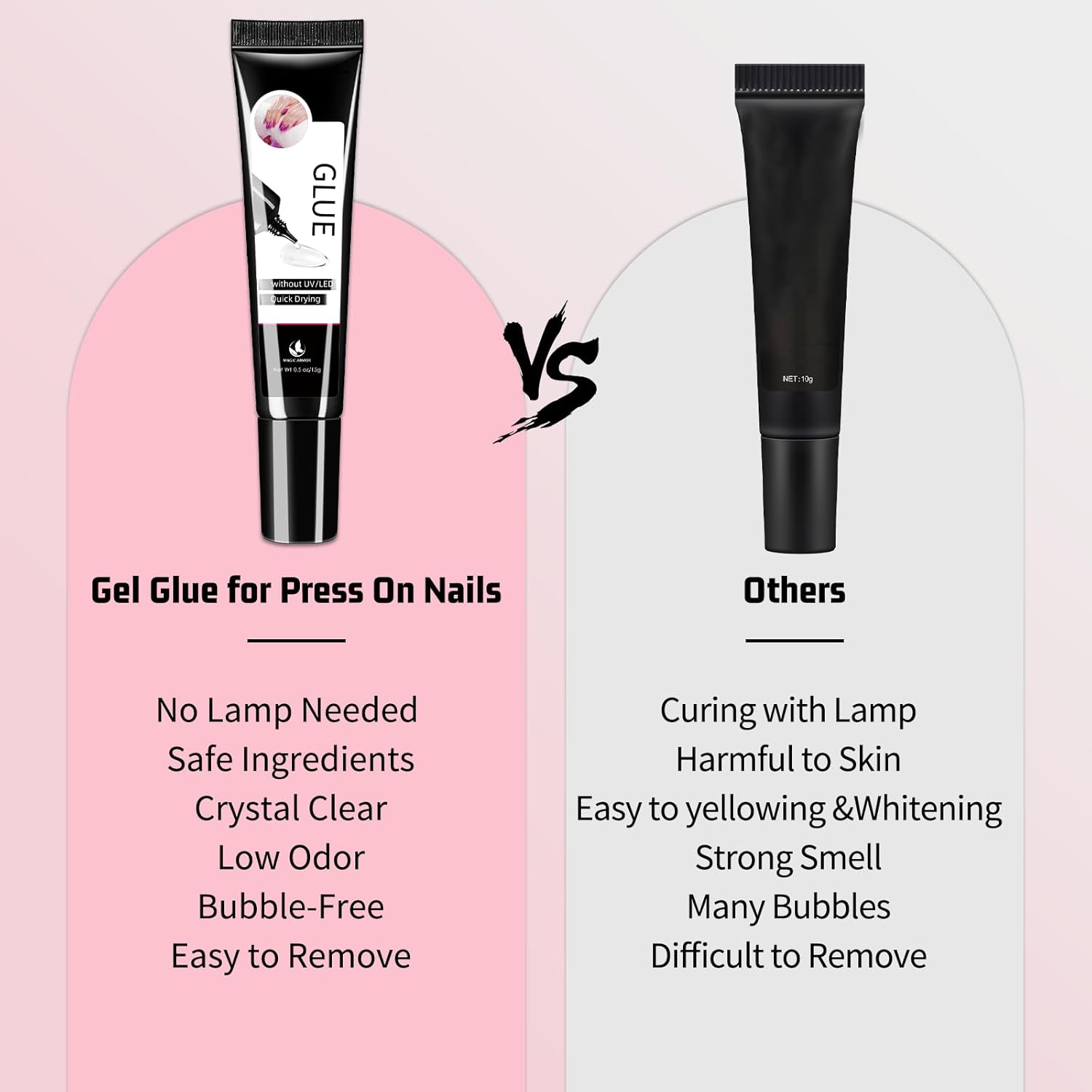- 【No UV Light Needed】 Unlike other solid nail glue gel, our gel nail glue dries in just 10 seconds and our semi solid press on nail glue requires no UV light curing, quick drying and application