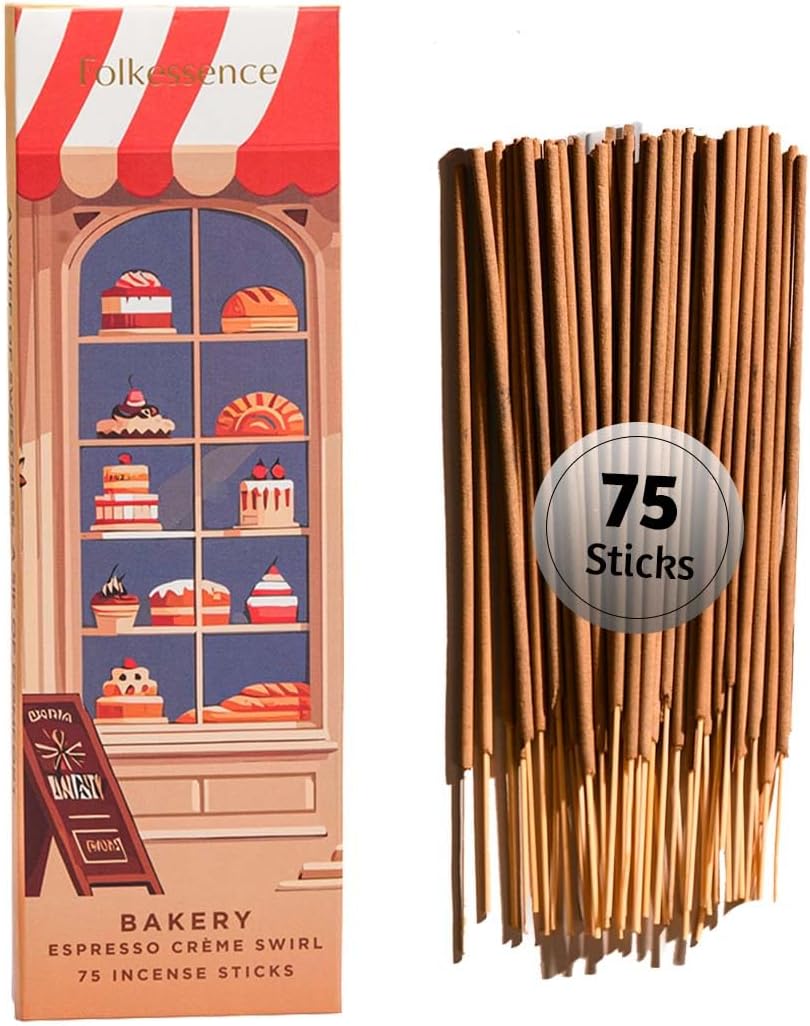 Folkulture Bakery Incense Sticks for Home | Pack of 75 (8") Organic Fall Insence-Stick for Meditation with 45 Mins Burn Time | Organic Insence, Aromatherapy Fall Scents | Non Toxic Coffee Inscent