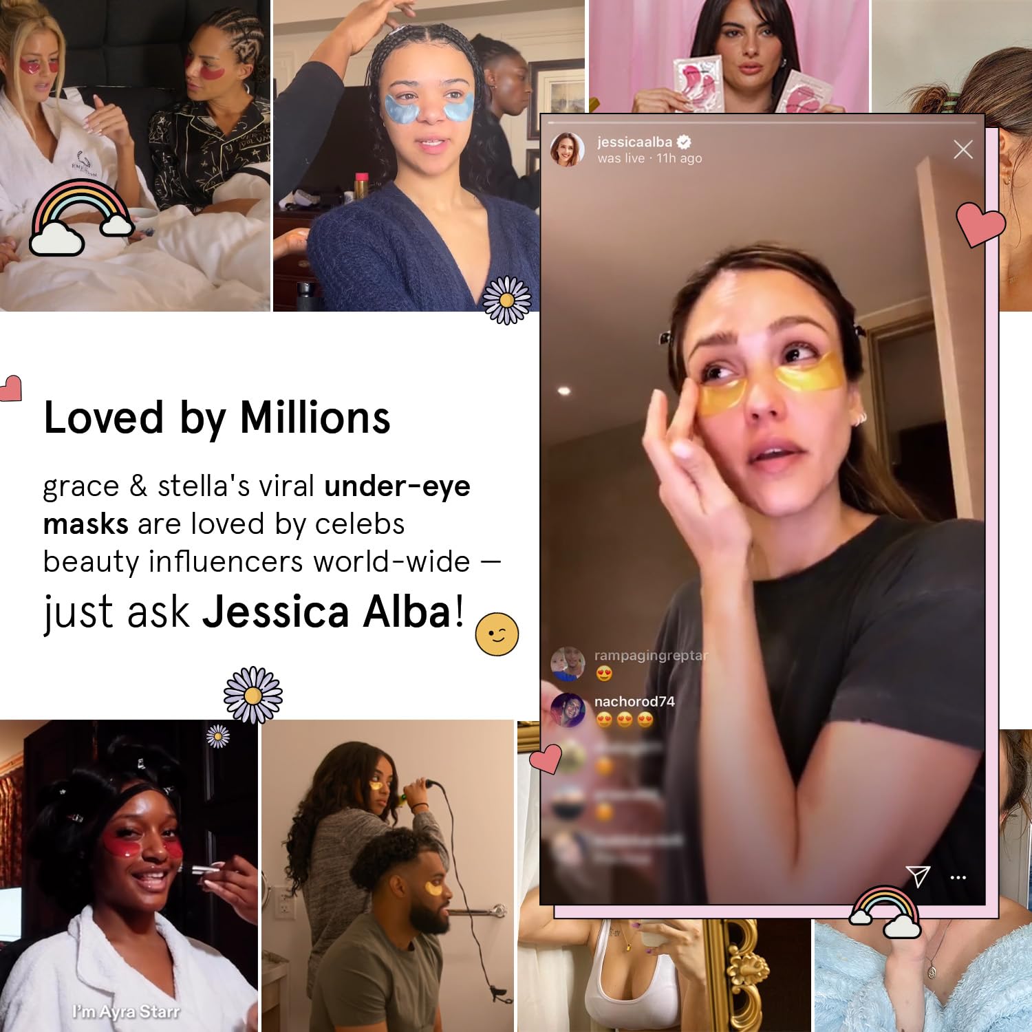 - Loved By Millions - Not to brag, but our under eye patches for puffy eyes are kind of famous. Theyβre featured in magazines like Elle & Marie Claire, and used by celebrities like Jessica Alba. Experience the hype with this all-color variety set!