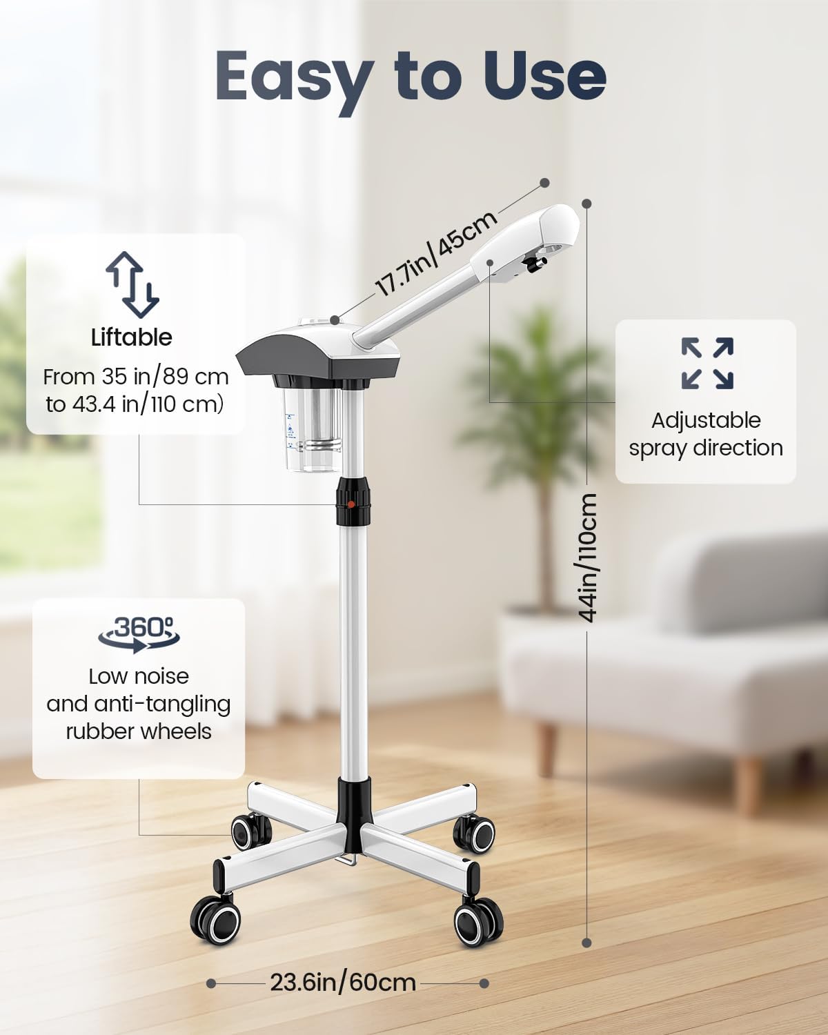 - 🔄 360° Full Coverage Steam & Large Capacity: Unrivaled versatility! The unique 360° rotatable nozzle directs steam precisely to your face, neck, or décolletage. A generous 400ml water tank ensures extended steaming without constant refills, providing efficient and convenient deep cleansing & hydration. An essential beauty tool for esthetician students, makeup artists, and home skincare enthusiasts.