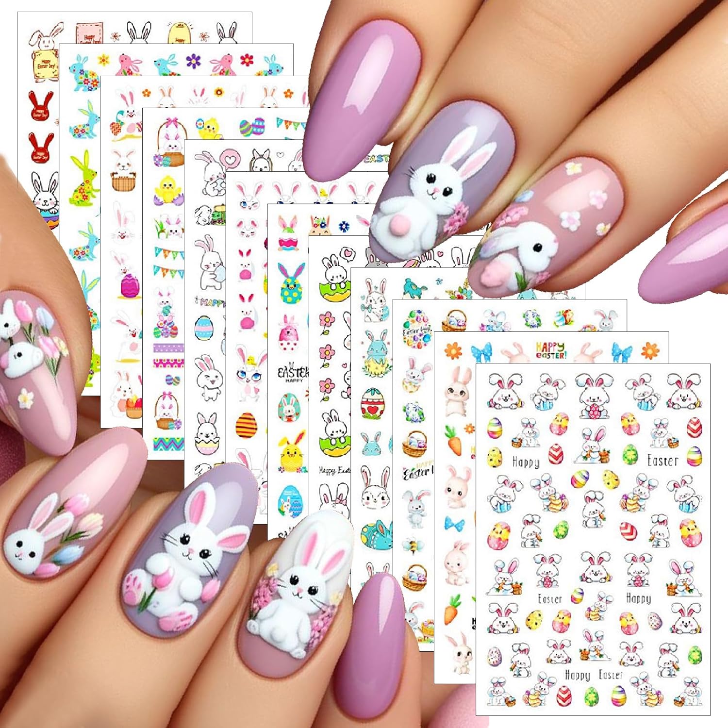 - Easter Nail Stickers- You will get 12 sheets easte nail art stickers for acrylic nails supply, many pattern for you to choose, cute bunny nail designs, and satisfy your rich imagination of nail DIY