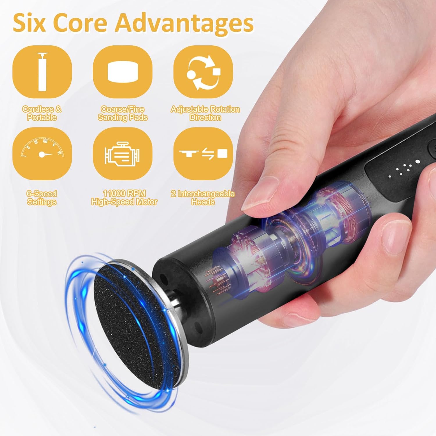 - 【Professional-Grade Care】: Our electric callus remover is equipped with 2 premium metal heads (Callus/Nail Modes), offering a dual-use design that provides salon-quality foot care smoothness without the high cost. We also include 3 types of interchangeable sandpapers to meet different needs while eliminating the risk of cross-contamination.