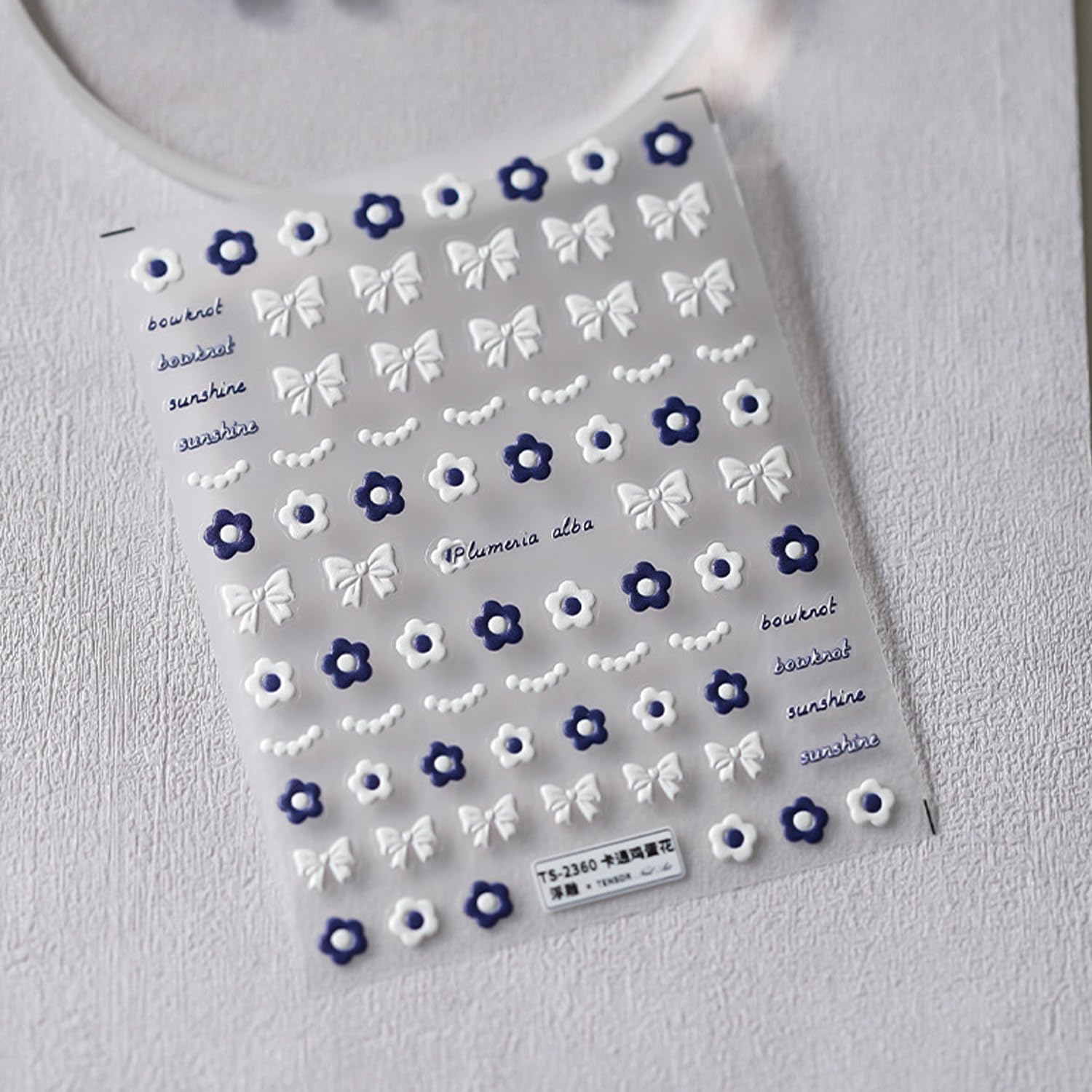 - spring summer nail stickers for nail art for women kids girls holiday cute flower nail art stickers 5D embossed nail decals design blue floral fingernail stickers calcomanías para uñas sticker para uñas