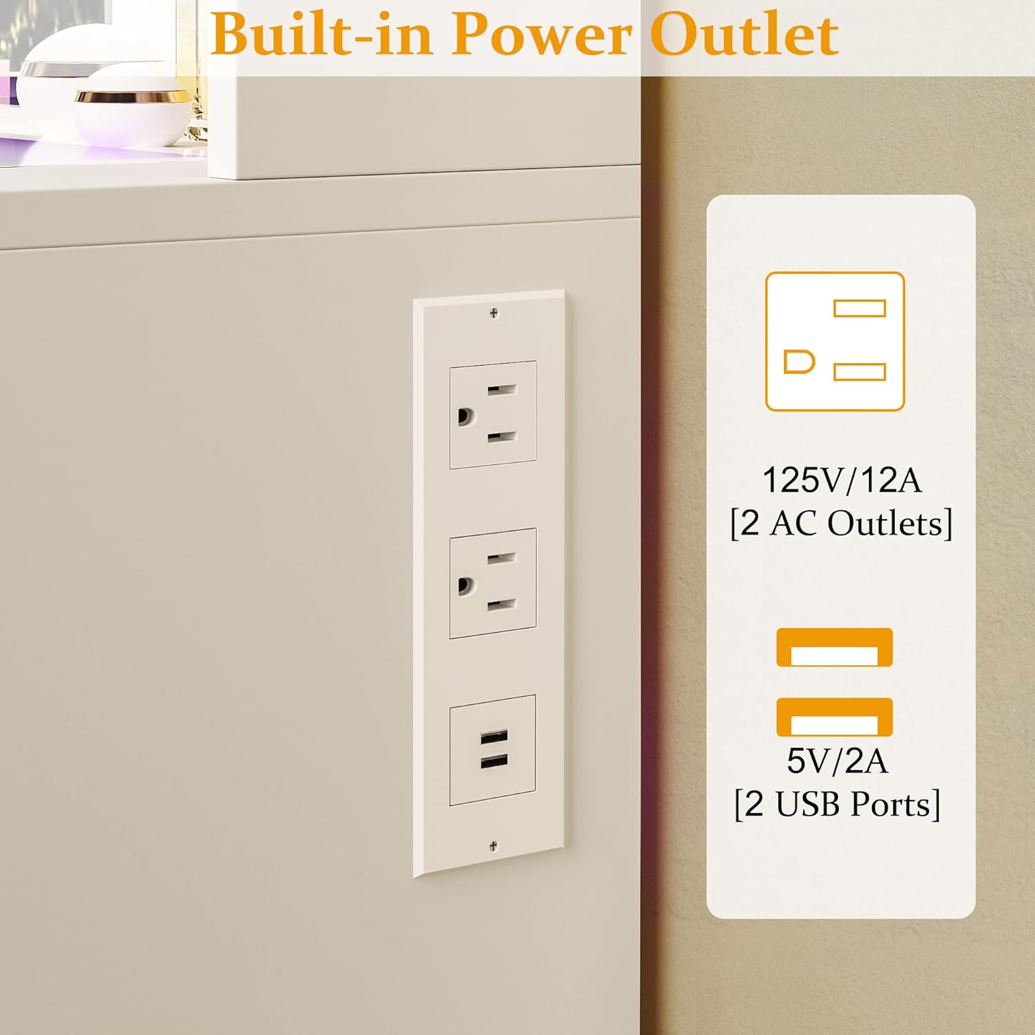 - Easy Assembly & Power Outlet: The makeup vanity with a power outlet, which provide power for your hair dryer, curling iron, and other electronic devices at the same time. Bringing more convenience to your daily life. The white vanity desk comes with tools and numbered accessories, very easy to assemble following the step-by-step instructions