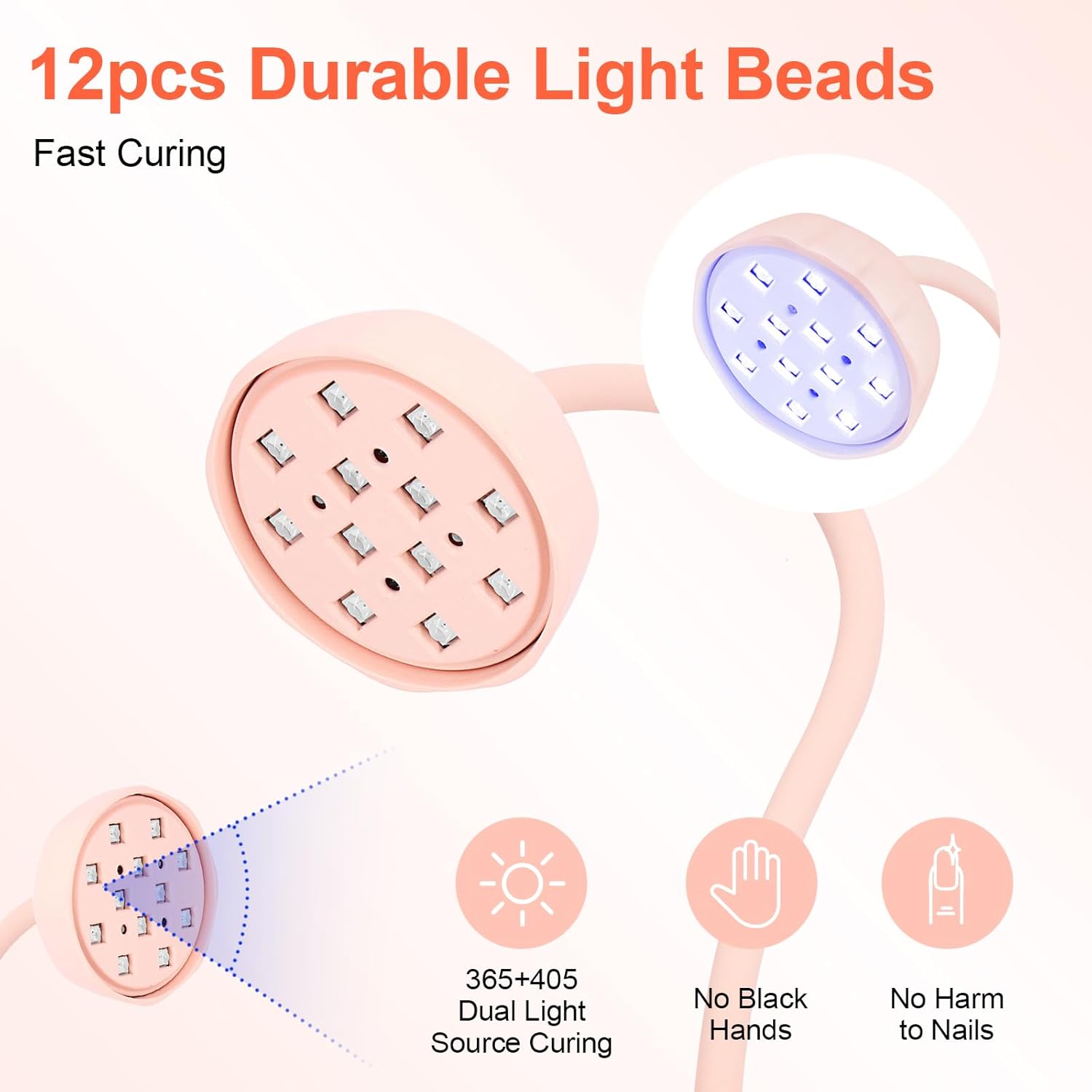 - Dual Light Source:This flash cure nail light comes with 12pcs dual light source lamp beads,the light is soft,provides convenience for false nail tip press on nails soft gel nail glue curing,quickly fixes nail charms and gel polish drawing, and improves the efficiency of nail art creation.