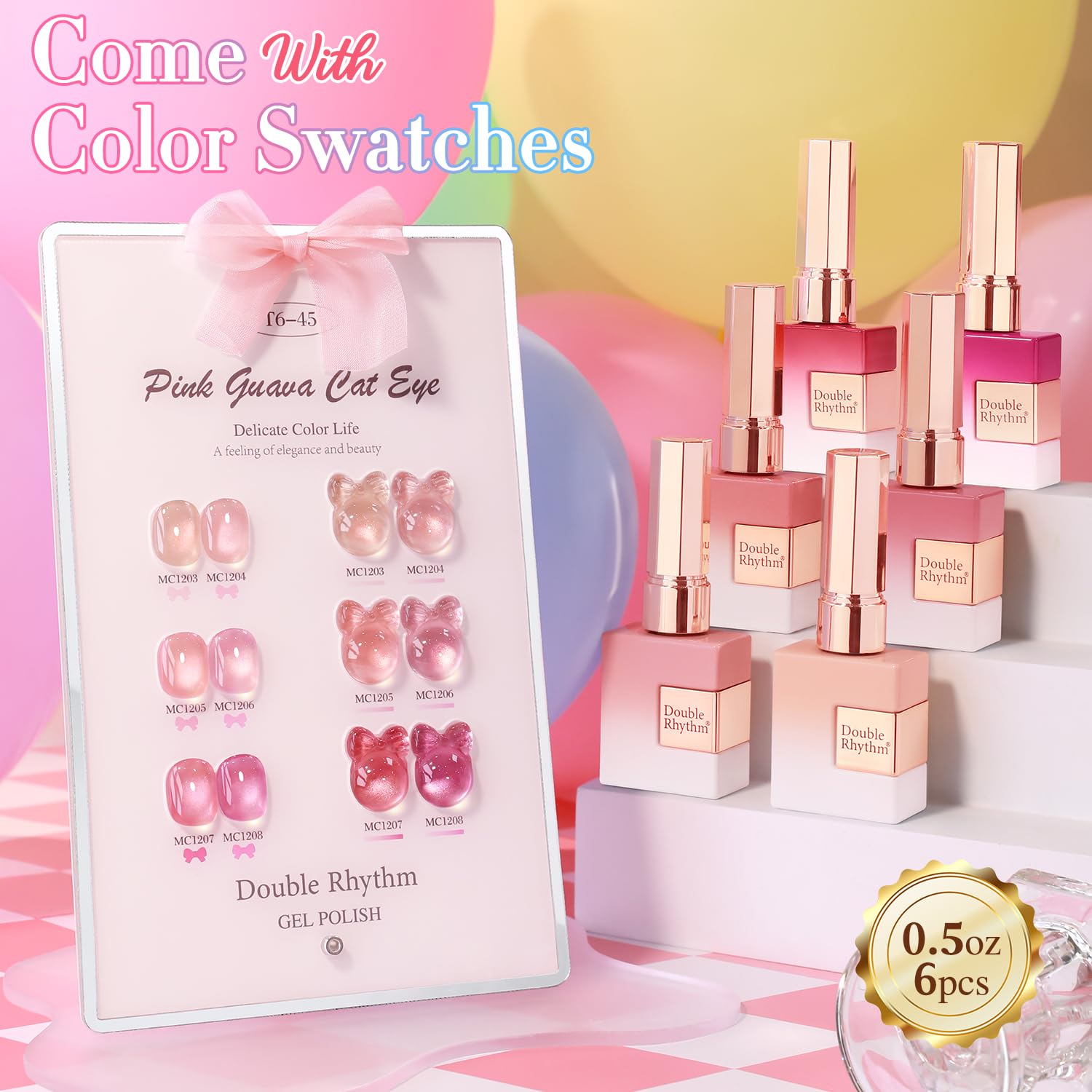 Double Rhythm Cat Eye Gel Nail Polish Set of 6 Same Color Same Bottle 0.5 Oz Shimmer Glitter with Magnet Holographic Reflective Magnetic UV Nail Polish Kit at Home (Glass Nude Pink Rose-T6-45)