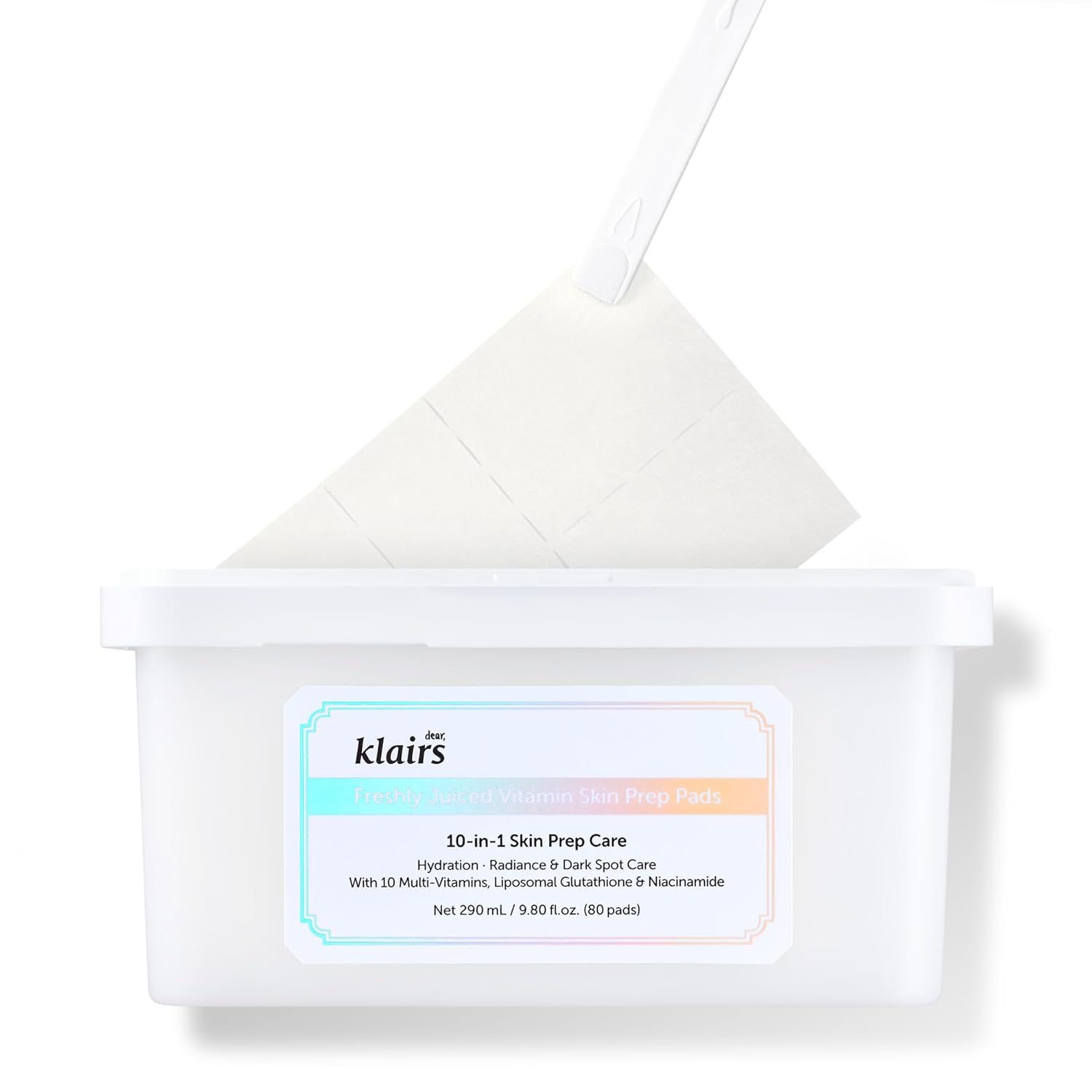 DearKlairs Freshly Juiced Vitamin Toner Pads, TikTakTok Easy Pick & Stick, Makeup Prep, Liposomal Glutathione, Easy-split, Glow, Glass Skin, Exfoliation, 80 pads