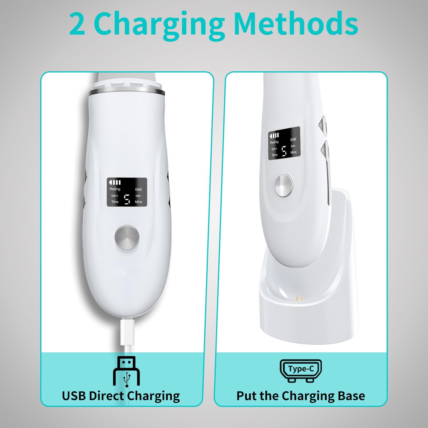 - 【Dual Charging Options & LED Display】Charge the spatula either on its base or directly via USB. The LED display shows battery life and operational mode, giving you the flexibility you need for your skincare routine. (Note: For safety, do not use while charging.)