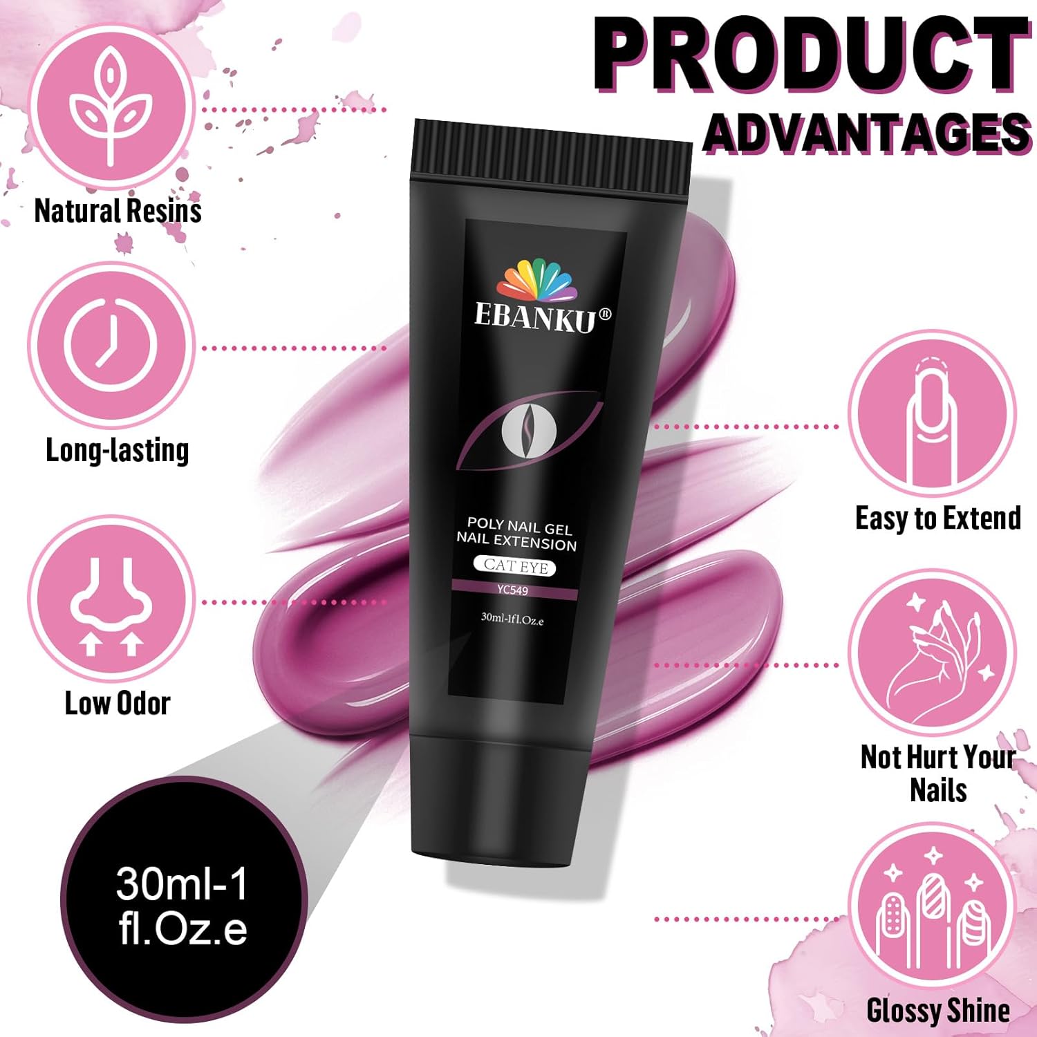 - 【Wide Application & High Gloss of Poly Gel Kit】You can use cat eye poly nail gel kit for poly gel nail, nail sculpting, nail art with rhinestone and other artistic creations of the nail extension gel kit to make you stand out from the crowd by this poly gel nail kits. Magnetic poly gel flash colors in poly gel nail kit, this poly gel extension nail kit is the perfect gift for all nail lovers with an even better color system.